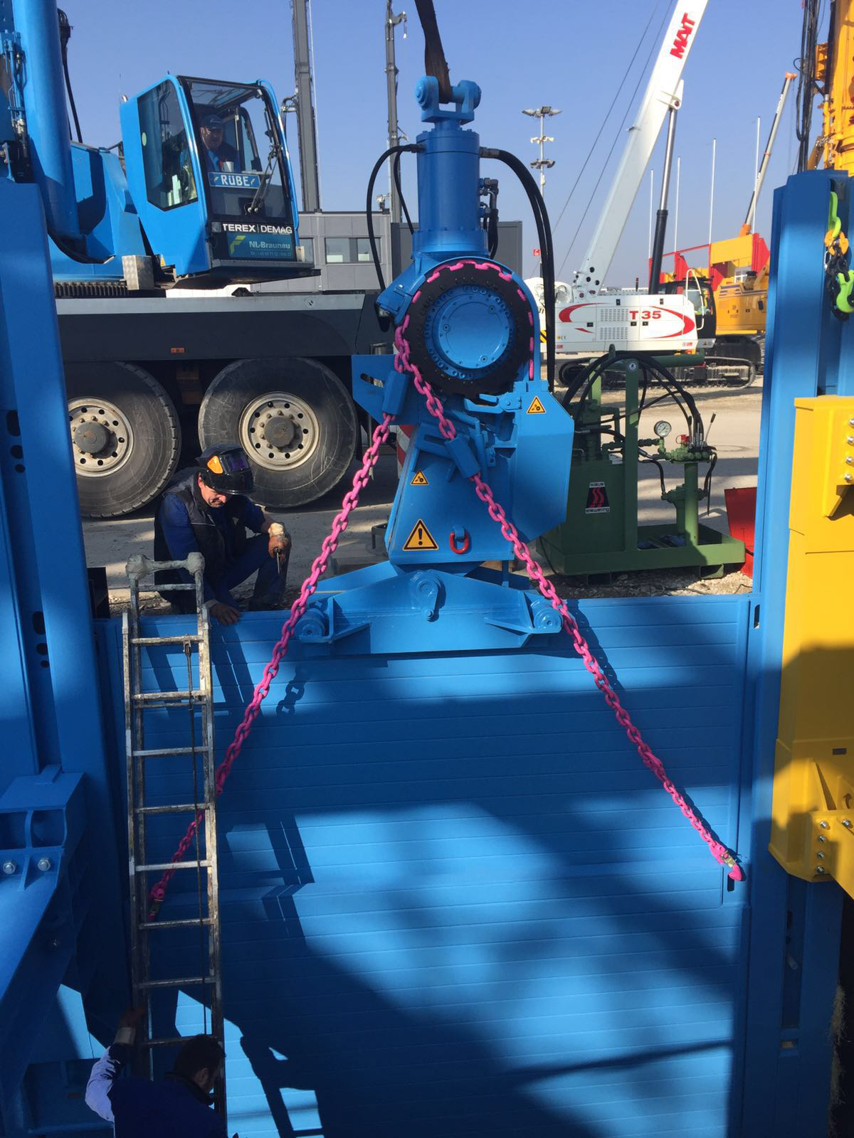 „Der Verbauzieher passt sich einfach den wechselnden Grabentiefen durch eine beliebig lange Kette auf einem Zahnkranz an. Nach dem Ablassen und Einhängen werden die Ketten aus dem Fahrerhaus gespannt und die Rückschlagsicherung eingerastet. Nachfolgend bedient der Baggerfahrer den Verbauzieher vollautomatisch vom Fahrerhaus aus, so dass ohne jegliches Nachspannen und Nachjustieren der Kette der Verbau aus dem Graben gezogen werden kann“, erklärt Ivo Steinborn, Technischer Leiter bei thyssenkrupp Infrastructure.