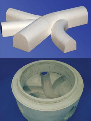 Nach dem Einsetzen dieser Styropor-Gerinne in Gießschalungen und dem Betoniervorgang entstehen homogen aus einem Stück die individuell-monolithischen Schachtunterteile mit sämtlichen Ausformungen und Anschlussöffnungen.
