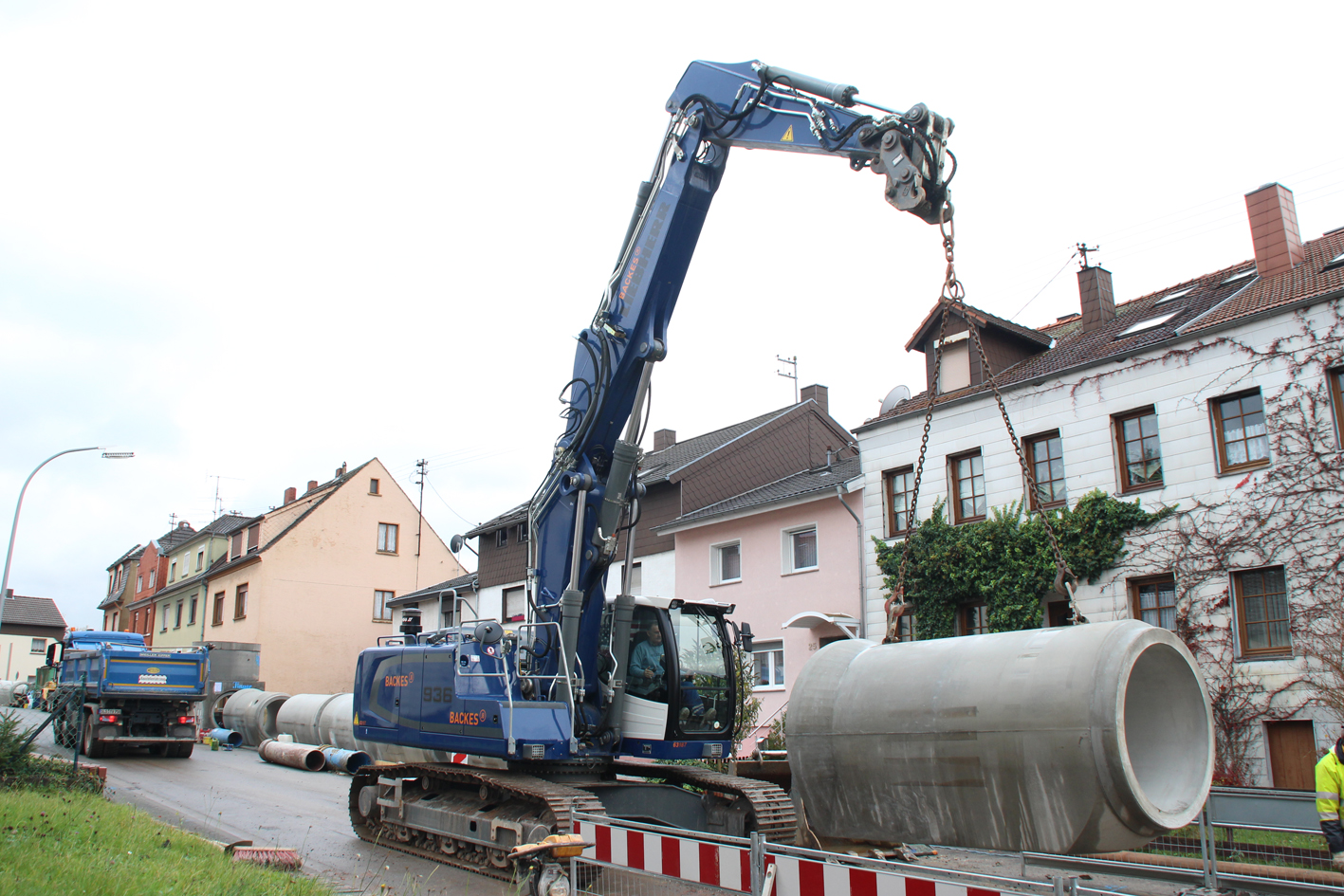 Ausgeführt wurden die Arbeit von der Backes Bauunternehmung AG & Co. KG aus Theley, die die bis zu 7 Tonnen schweren Betonbauteile mit einem 36-Tonnen Bagger in den Graben beförderte. Die Leistungsfähigkeit des neuen Kanalnetzes liegt bei 6000 Litern pro Sekunde.