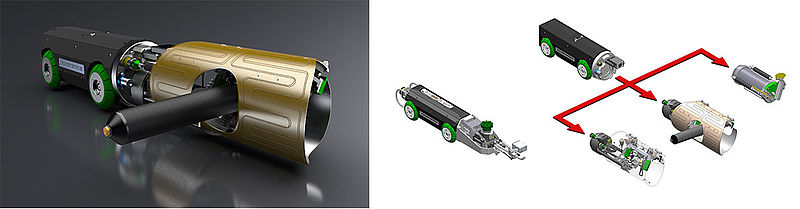 Auch in Eiprofilkanälen mit Dimensionssprüngen oder Hindernissen können jetzt mit Roboterunterstützung Reparaturarbeiten ausgeführt werden. Das neue Fahrwerk, das für alle Pipetronics-Roboter verwendet werden kann, ermöglicht damit nicht nur ein schnelleres, sondern auch ein präziseres Arbeiten in Ei- und Sonderprofilen.