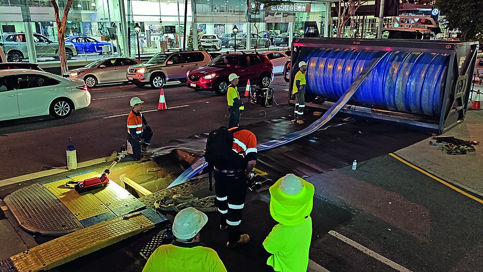 In a single day shift, the pre-folded liner was pulled into the 350 m field trial section of the Ann Street trunk main, formed into its circular shape with compressed air and successfully connected to the pipeline network, demonstrating the speed and versatility of the system.