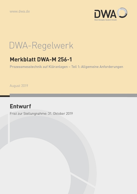 Die Deutsche Vereinigung für Wasserwirtschaft, Abwasser und Abfall e. V. (DWA) möchte das Merkblatt DWA-M 256-6 "Prozessmesstechnik auf Kläranlagen - Teil 6: Messeinrichtungen zur Bestimmung des Füll- und Grenzstandes" und Teil 9: Messeinrichtungen zur Bestimmung des Drucks" und überarbeiten. Darüber hinaus wurde Teil 1: Allgemeine Anforderungen“, vorgelegt, der hiermit zur öffentlichen Diskussion gestellt wird.