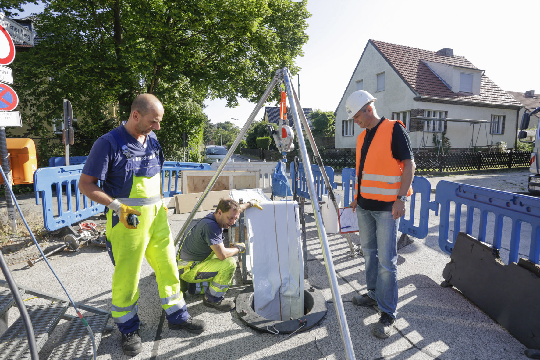 Prüfingenieure der Gütegemeinschaft Kanalbau auf der Baustelle