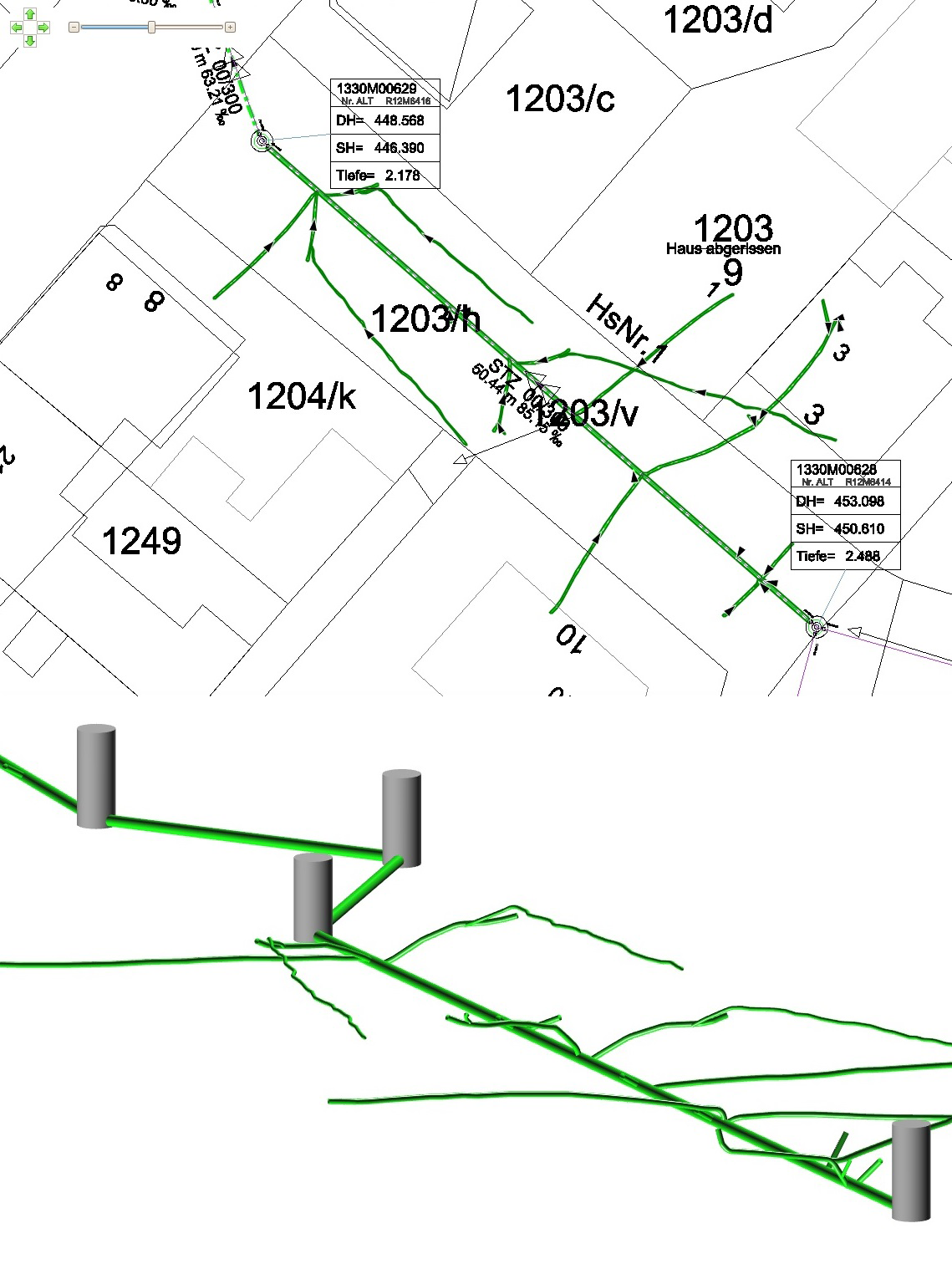 Ziel der Untersuchung und der Verlaufsmessung war es, eine generelle Einschätzung der Rohrzustände zu erhalten und den genauen Verlauf der Anschlüsse herauszufinden.