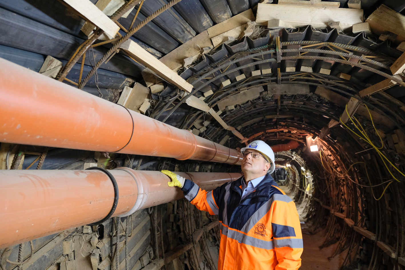 Eine Einschätzung, die Mielke teilt: „An der Ortsbrust und im Stollen war alles in Ordnung. Das Baufeld war sauber und aufgeräumt und das vorgeschriebene Sicherheitsequipment vorhanden. Ich bin sehr zufrieden mit der Baustelle und den Arbeiten von DA Ingenieur-Bau und Fenners.“ Knifflig werden am Ende laut Porrmann noch die Umbindungen des bestehenden Hauptsammlers an die neue Kanaltrasse. Aber auch diese Herausforderung werde das Team gemeinsam meistern, ist Mielke überzeugt.