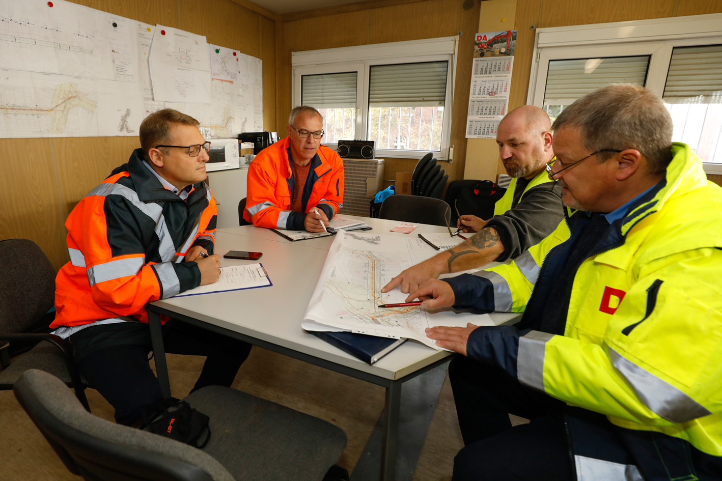 „Die ARGE hat sich als Bietergemeinschaft auf die Ausschreibung beworben und die einzelnen Aufgabenbereiche untereinander aufgeteilt“, erläutert Dipl.-Ing. Stephan Porrmann, ARGE-Bauleiter von DA Ingenieur-Bau. „Die Firma Wilhelm Fenners stellt in erster Linie eine Stollenbau-Kolonne und wir stellen die Kolonne für den offenen Kanalbau.“