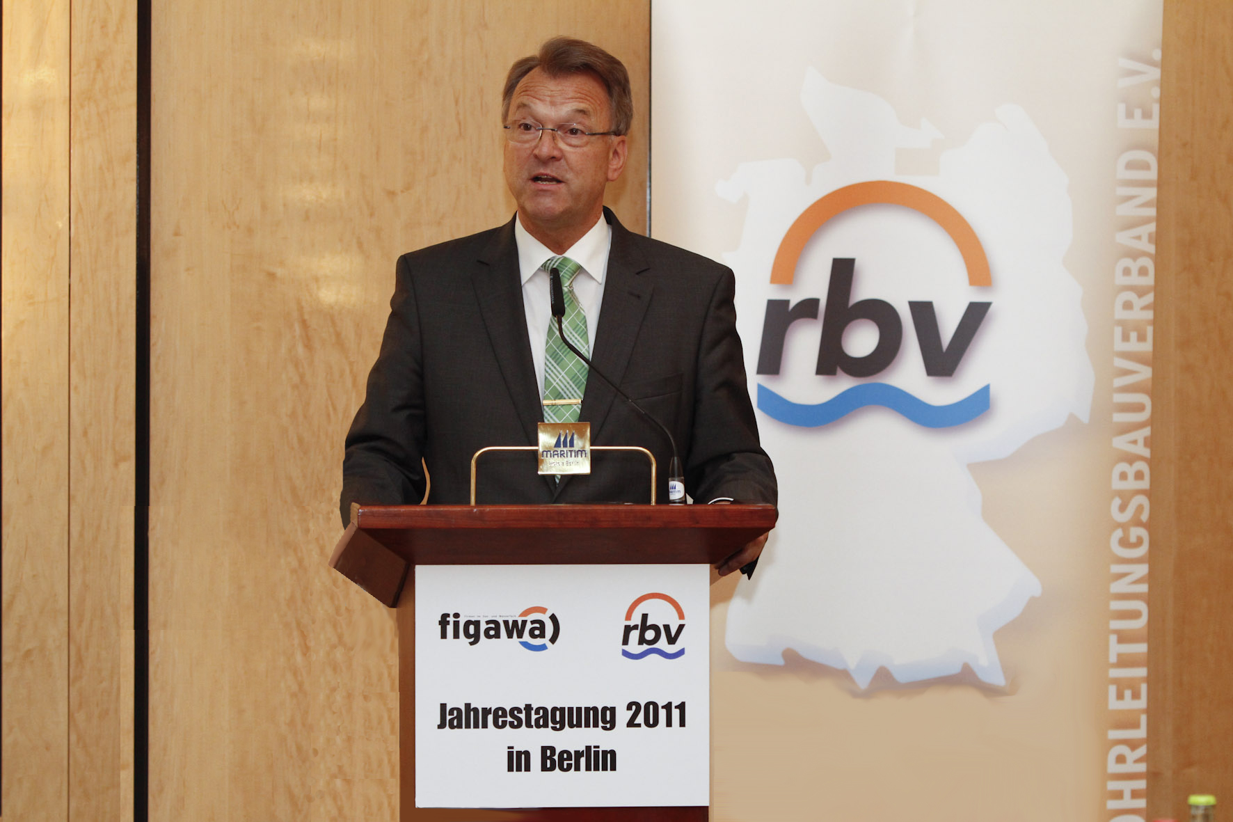 Im Jahr 1 nach der Satzungsänderung präsentierte sich der rbv als starker Partner der Mitgliedsunternehmen aus den Bereichen Gas, Wasser, Fernwärme, Kanal und Kabel, der sich mit einer neuen Struktur und neuen Gremien auf die Herausforderungen eines im Wandel befindlichen Marktes eingestellt hat. Die durch den Paradigmenwechsel in der Energiepolitik ausgelösten tiefgreifenden Auswirkungen auf die gesamte Versorgungswirtschaft bildeten den roten Faden in der Eröffnungsrede von rbv-Präsident Dipl.-Ing. Klaus Küsel. „Auf die Mittelstandsunternehmen des deutschen Leitungsbaus werden enorme Aufgaben zukommen, die zu einer noch ungeahnten Herausforderung werden in Bezug auf Struktur, Personal und ingenieurtechnischer Leistungsfähigkeit“, erklärte Küsel, wobei er darauf hinwies, dass vor allem die Störfälle in Fukushima und die daraus resultierende Diskussion über den Ausstieg aus der Atomkraft aktuell zu noch tiefgreifenderen energietechnischen Umwälzungen in der Branche führen würden. „Bereits das Vorhaben, den Anteil der erneuerbaren Energien am Energiemix von 16 % auf 30 % zu steigern, stellte eine kaum vorstellbare nationale Aufgaben dar“, so Küsel, „doch seit Fukushima scheinen selbst die visionärsten Gedanken überholt.“