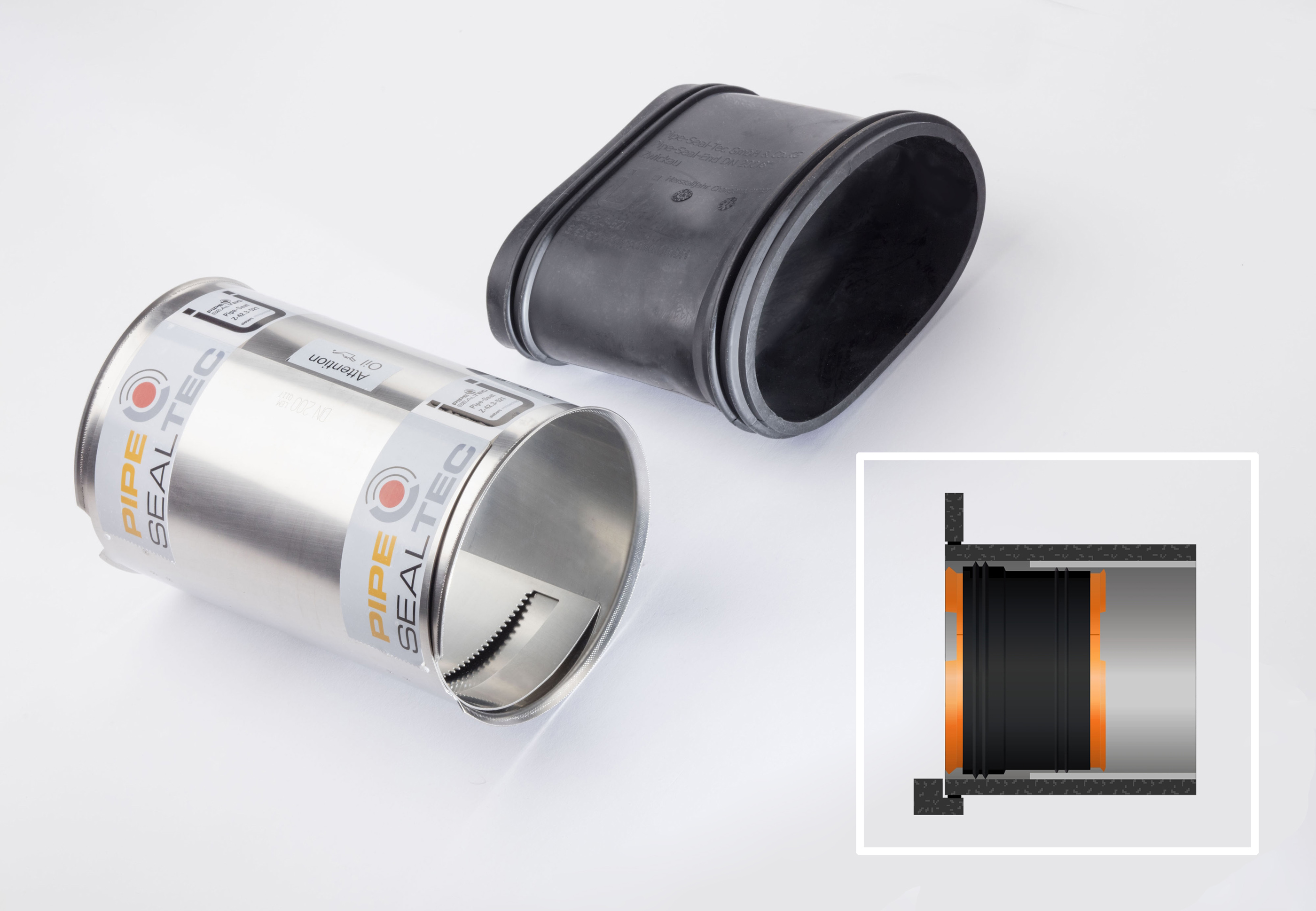 Die Pipe-Seal-End- und Fix-Edelstahlhülsen wurde zudem so konzipiert, dass sie mit einem Rollmaß von 560 mm (incl. Dichtung 572 mm bei -End und 581 bei -Fix) zur Anwendung bis DN 700 problemlos durch den Schachtkonus passen. Eine einteilige Pipe-Seal-End und Fix-Edelstahlmanschette bietet die Pipe-Seal-Tec bis zur Nennweite DN 800 an.