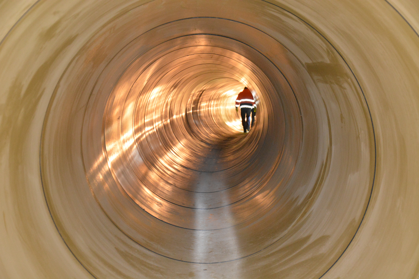 Die Rohre wurden mit einem Spezialfahrzeug der Firma Tauber zu ihrem Bestimmungsort innerhalb des Altkanals auf einer Länge von 275 m transportiert und dort mittels der werkseitig vormontierten Standard-FWC-Kupplungen als Steckverbindungen zusammengefügt. Diese Methode hat sich schon in den unterschiedlichsten Sanierungsprojekten sehr gut für das Kurzrohr-Relining von begehbaren Nennweiten bewährt und ermöglicht eine hohe Verlegegeschwindigkeit bei optimaler Verlegequalität.