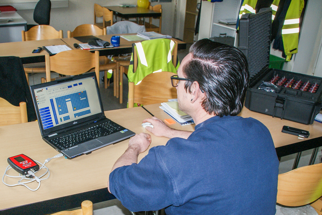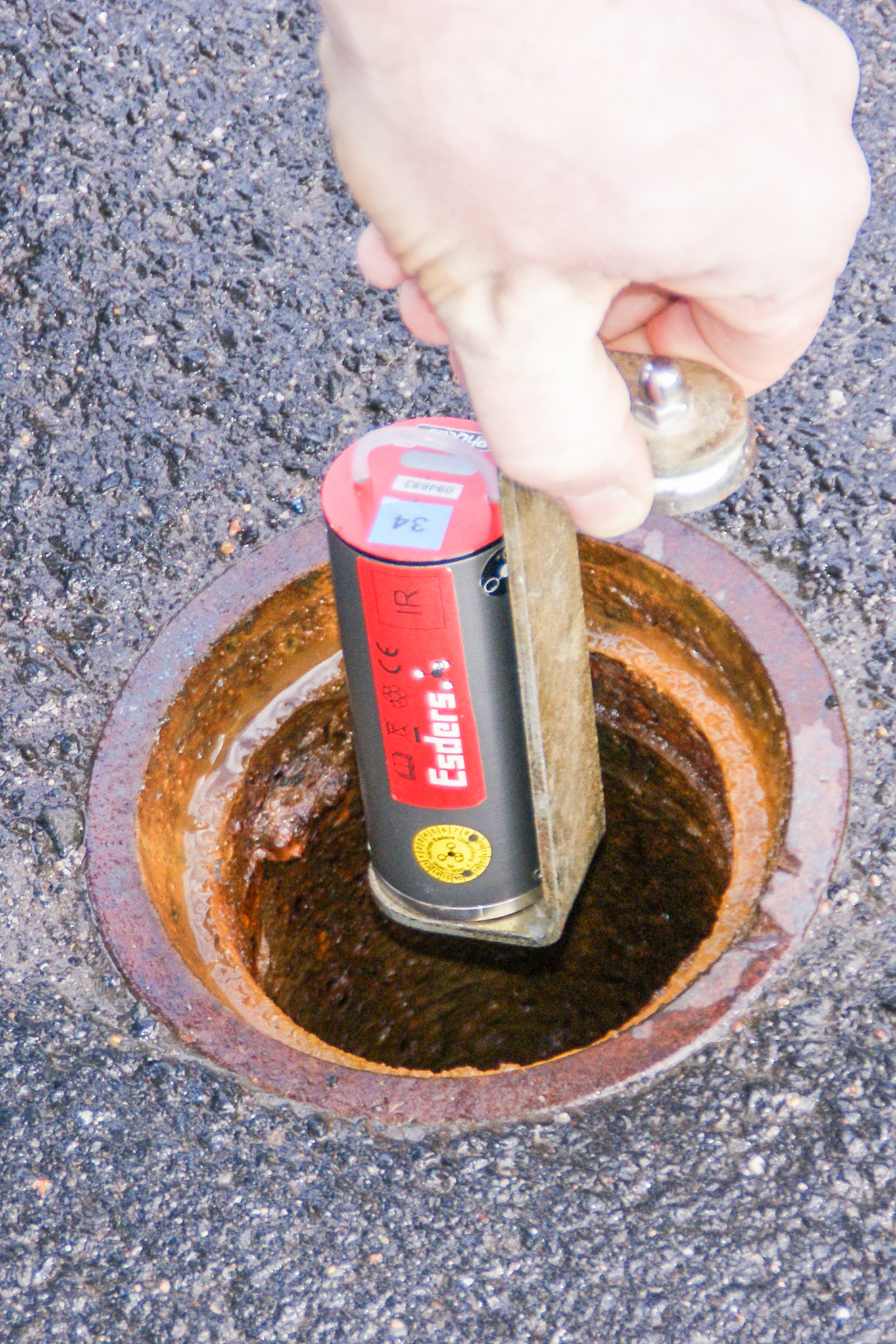 Für die Identifizierung eventueller Schwachstellen werden die Logger tagsüber mit dem dazugehörigen Auslesegerät Smart Recorder programmiert und einfach in Kappen und Schiebern des zu überprüfenden Abschnitts ausgesetzt.