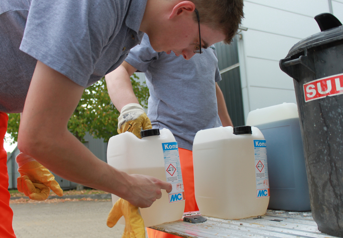„Um unsere Mitarbeiter regelmäßig auf bestimmte Themen aufmerksam zu machen, haben wir auffällige Türhänger drucken lassen. Diese werden den Kolonnen einmal im Monat – immer mit unterschiedlichen Themenschwerpunkten – an die Fahrzeuge gehängt“, erklärt Benedikt Stentrup, Geschäftsführer der Sanierungstechnik Dommel GmbH.