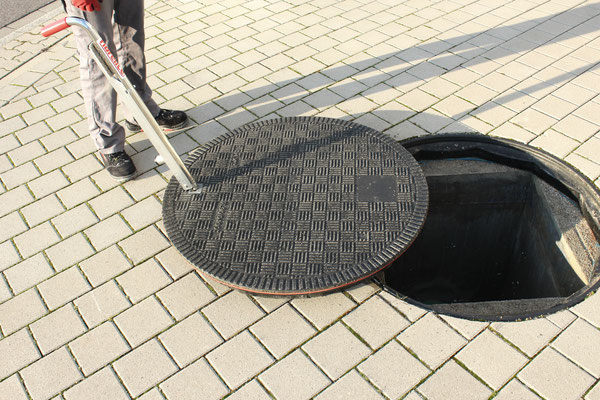 Leichtes Handling der GFK-Schachtabdeckungen