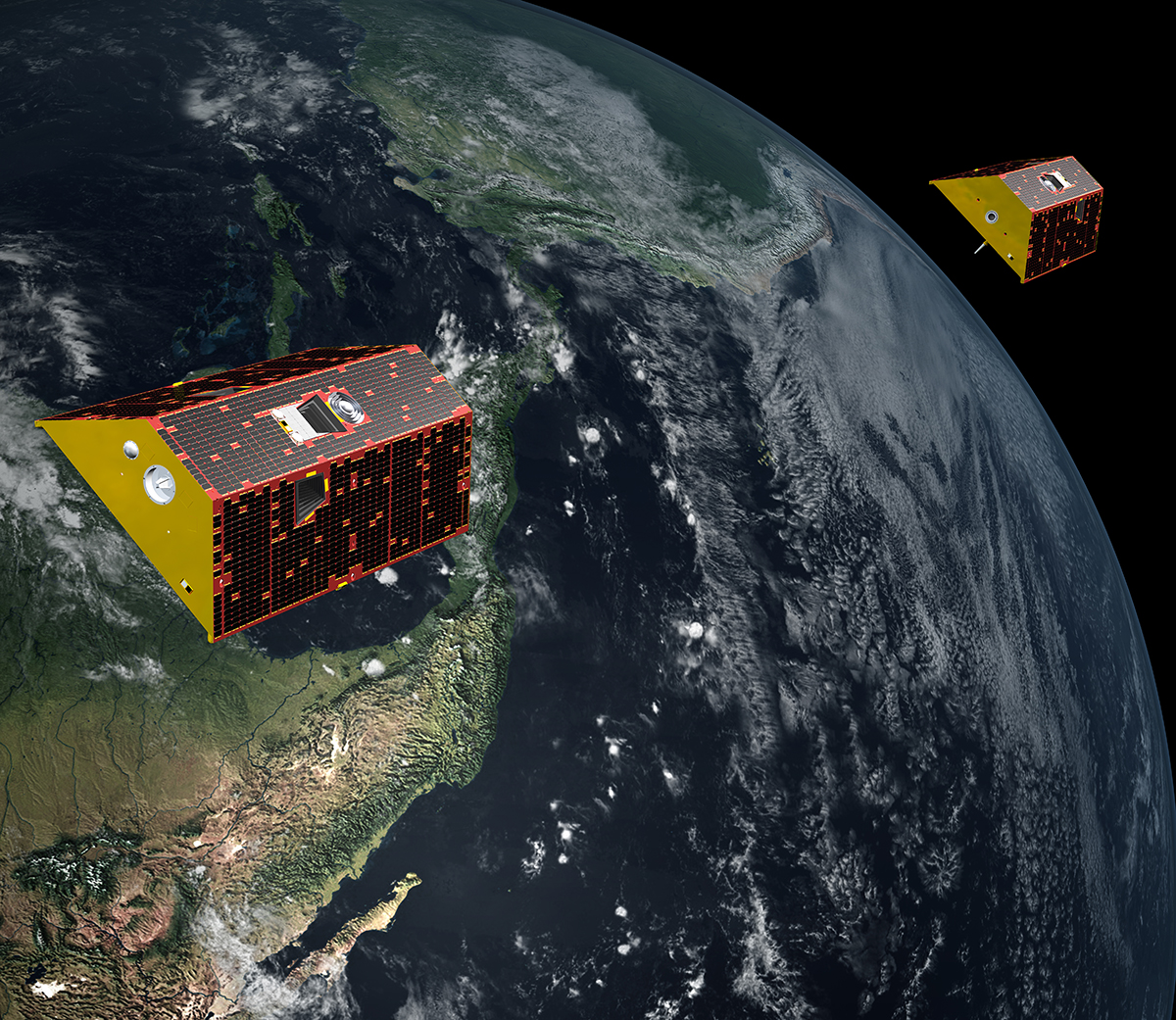 Wie können die Geodätinnen und Geodäten an der TU Graz mit Daten aus dem Weltall genaue Aussagen über die Grundwasserspeicher tätigen? Kernstück des Projekts G3P sind Zwillingssatelliten namens Tom und Jerry, die in einer polaren Umlaufbahn in knapp 490 Kilometern Höhe die Erde umkreisen. Wichtig ist der Abstand zwischen den Satelliten von rund 200 Kilometern: Der hintere darf den vorderen nicht einholen, weswegen sie in Anlehnung an die Cartoon-Figuren auch die Bezeichnung Tom und Jerry erhalten haben.
