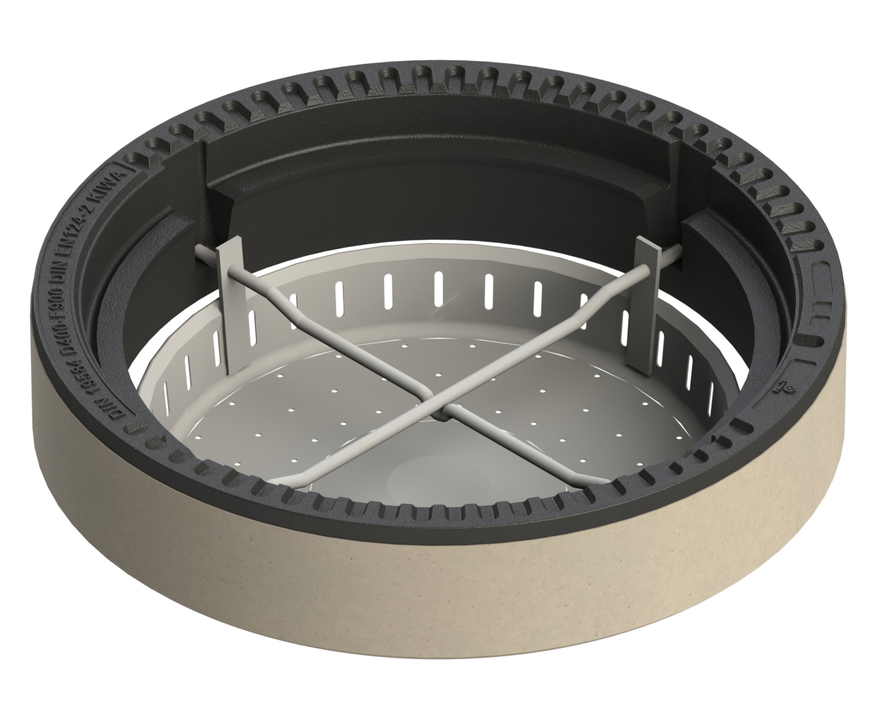 - Bei runden Schachtabdeckungen mit lichter Weite 600 und mit Schmutzfängeraufnahmen passen Schmutzfänger nach DIN 1221