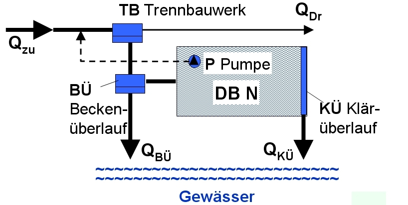 - die Erweiterung vorhandener Mischwasserbehandlungskonzepte durch zusätzliche Regenüberlaufbecken und deren Einpassung in das vorgegebene System
