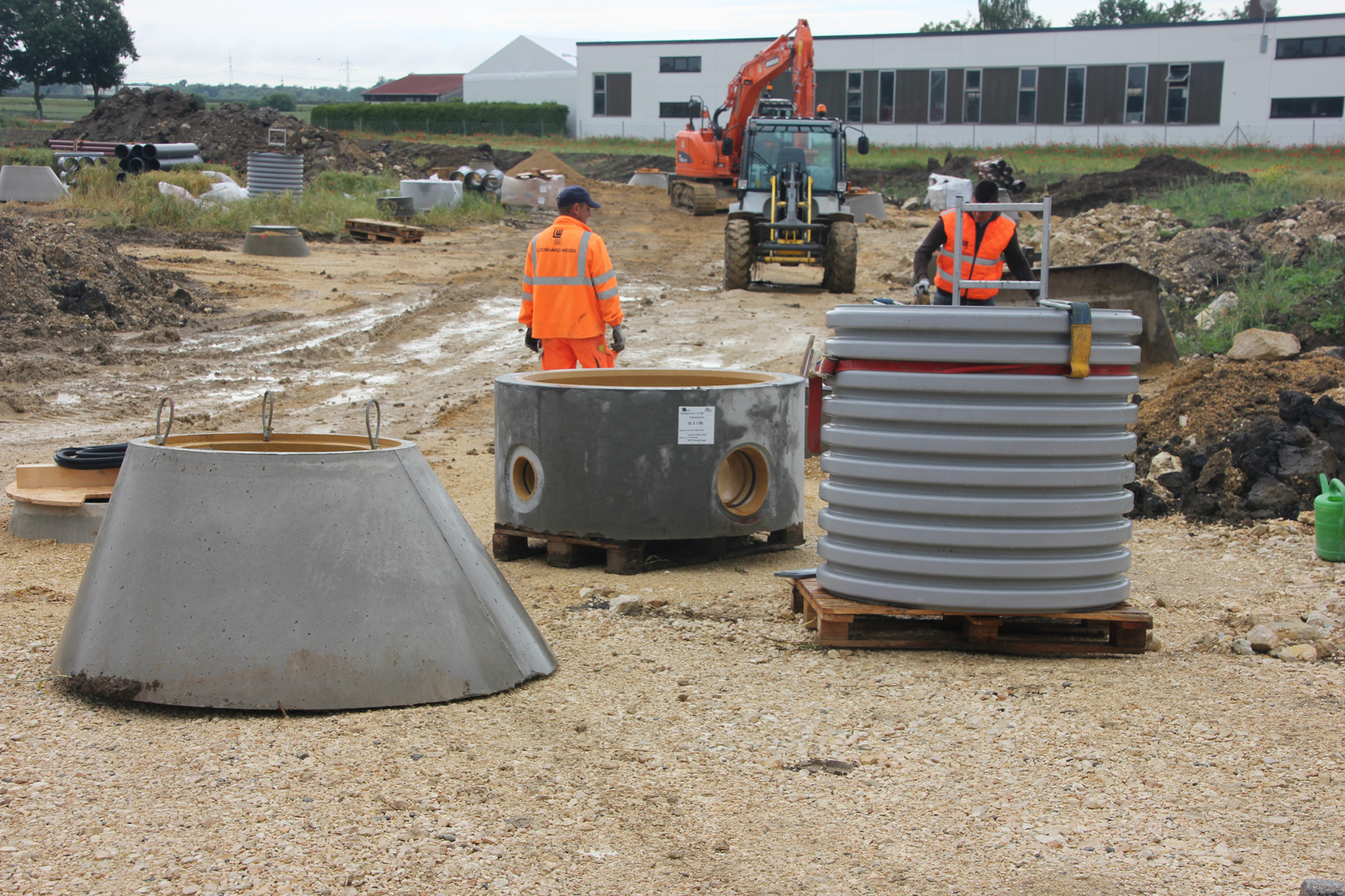 Für die Erschließung des Gebietes setzte die mit der Planung beauftragte Ingenieurbüro Wassermüller Ulm GmbH auf eine Reihe unterschiedlicher Produkte der Funke Kunststoffe GmbH. Unter anderem baute die LEONHARD WEISS GmbH & Co. KG. Straßenbau Günzburg, 16 Exemplare des Funke Schachtes DN 1000 ein. Die Entscheidung war insofern nicht selbstverständlich, als bei vergleichbaren Projekten in der Region bislang ausnahmslos herkömmliche Schächte aus Beton zum Einsatz gekommen sind.