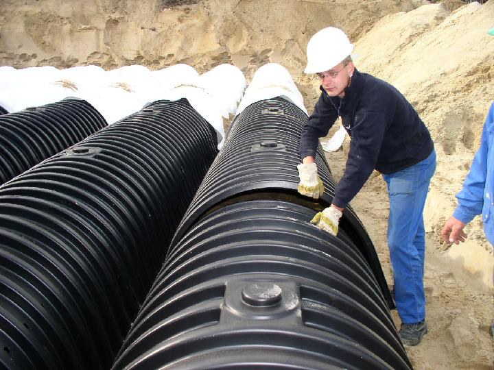 Am Markt haben sich inzwischen die Schlagworte Kamerabefahrkeit und Spülbarkeit etabliert. Es geht um die Erhaltung der Versickerungsfähigkeit über die komplette Lebensdauer der Rigole. Feiner Schmutz über den Regenabfluss der versiegelten Flächen kann sich am Boden der Rigole absetzen und damit die Versickerungsleistung beeinträchtigen.