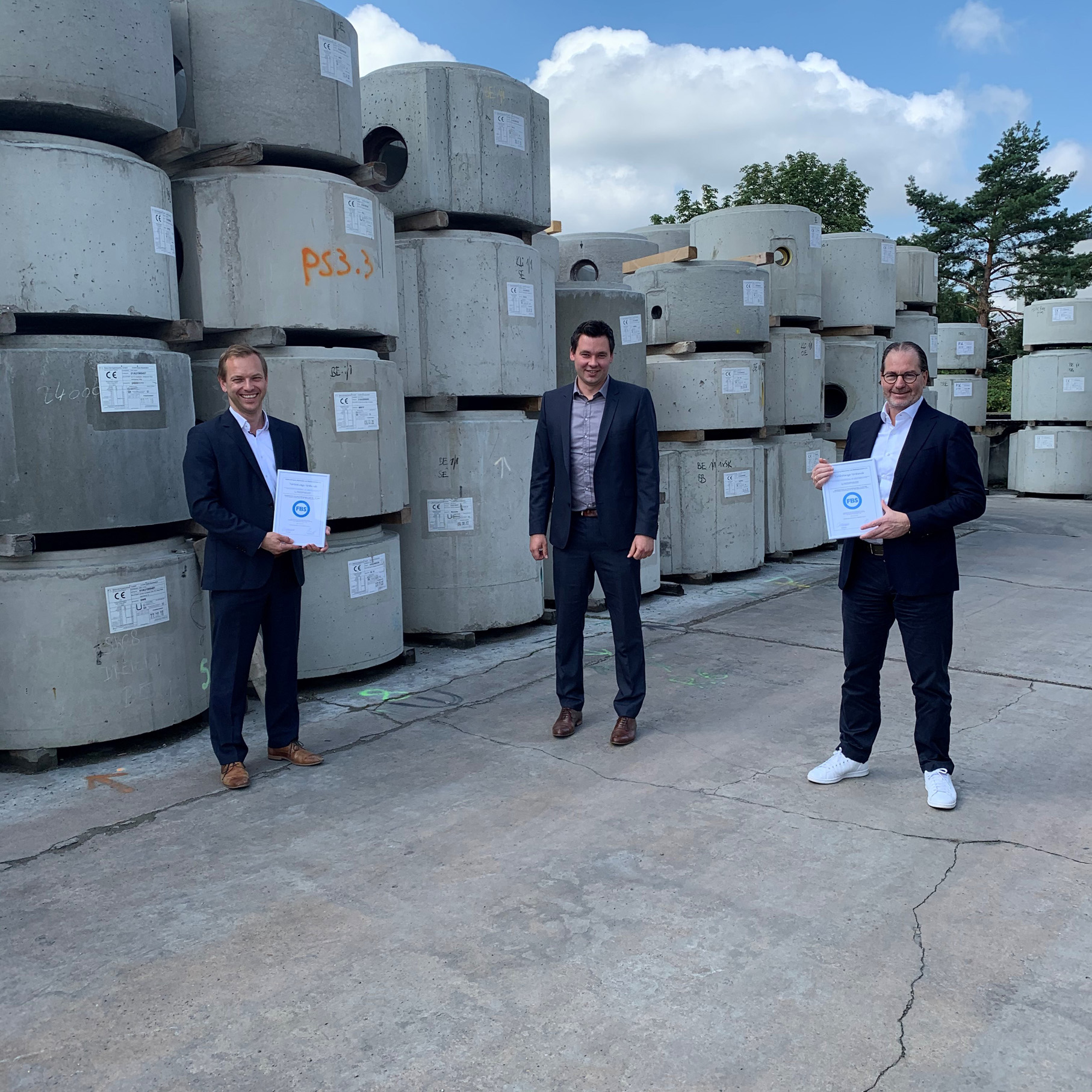 Die Geschäftsführer der P.V. Gruppe, Hr. Ernestos Varvaroussis und Hr. Florian John, nahmen die Urkunden vom FBS-Geschäftsführer, Hr. Dr.-Ing. Markus Lanzerath, am Hauptsitz in Hanau persönlich in Empfang. „Die Urkunden sind eine weitere Bestätigung für das gesamte Team in Gersdorf, jeden Tag daran zu arbeiten, durchgehend eine exzellente Qualität zu produzieren und zu liefern“ so Geschäftsführer Florian John. „Gleichzeitig ist die Verleihung der FBS-Qualitätszeichen für Stahlbetonrohre ein Ansporn für unser Unternehmen, die Anforderungen und Ansprüche unserer Kunden jederzeit umfassend zu erfüllen und somit unsere Markposition zu festigen“ so John weiter.