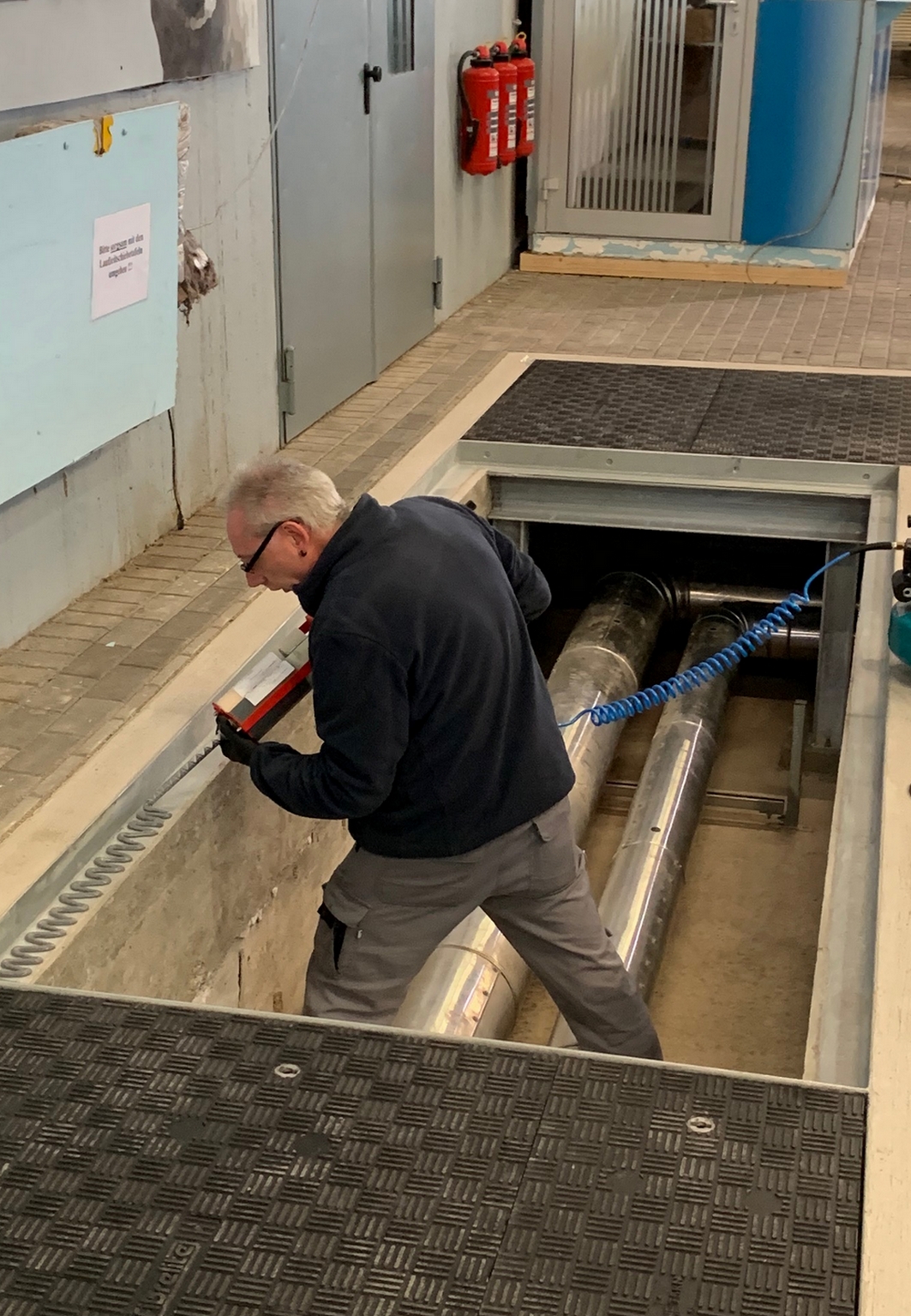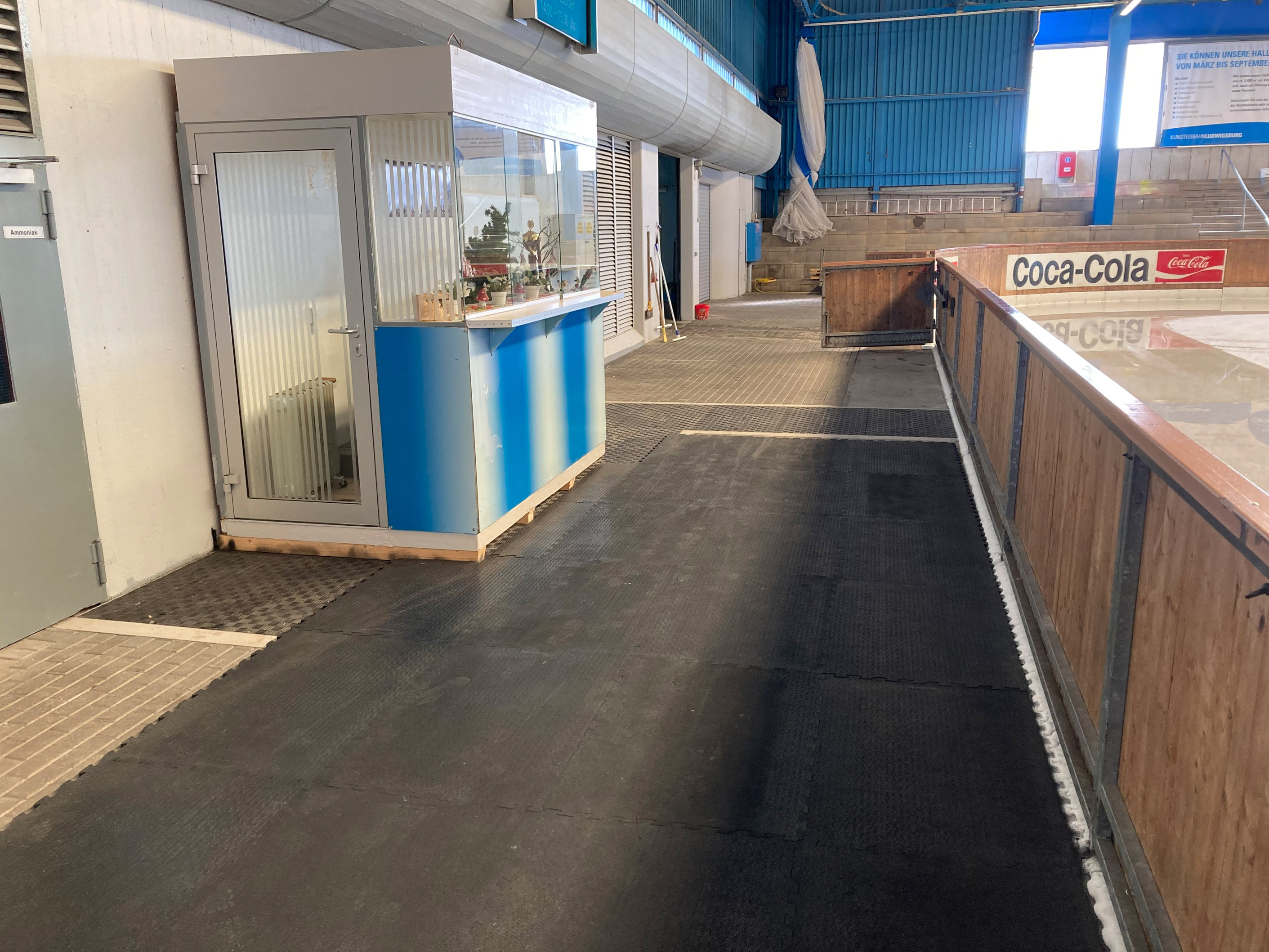 Für den Betrieb der Eisbahn sind zahlreiche Rohre und Leitungen nötig, die unter dem 1977 errichteten Gebäude zwischen der Anschlussstelle und der Eisfläche, partiell auch unter dem dazwischen liegenden Besucher-Gehweg, verlaufen. Bislang bedeckte eine schwere Betonplatte inklusive Pflasterung die Zugangsöffnung zu dieser unterirdischen Infrastruktur. Die massive Vorrichtung war jedoch besonders unhandlich: So musste bei Wartungsarbeiten und Kontrollen das Pflaster stets aufgenommen und die Betonplatte ausgehoben werden. Um dies zu vereinfachen, war eine deutlich leichtere Abdeckung gefragt, die mit maximal zwei Personen geöffnet werden kann.