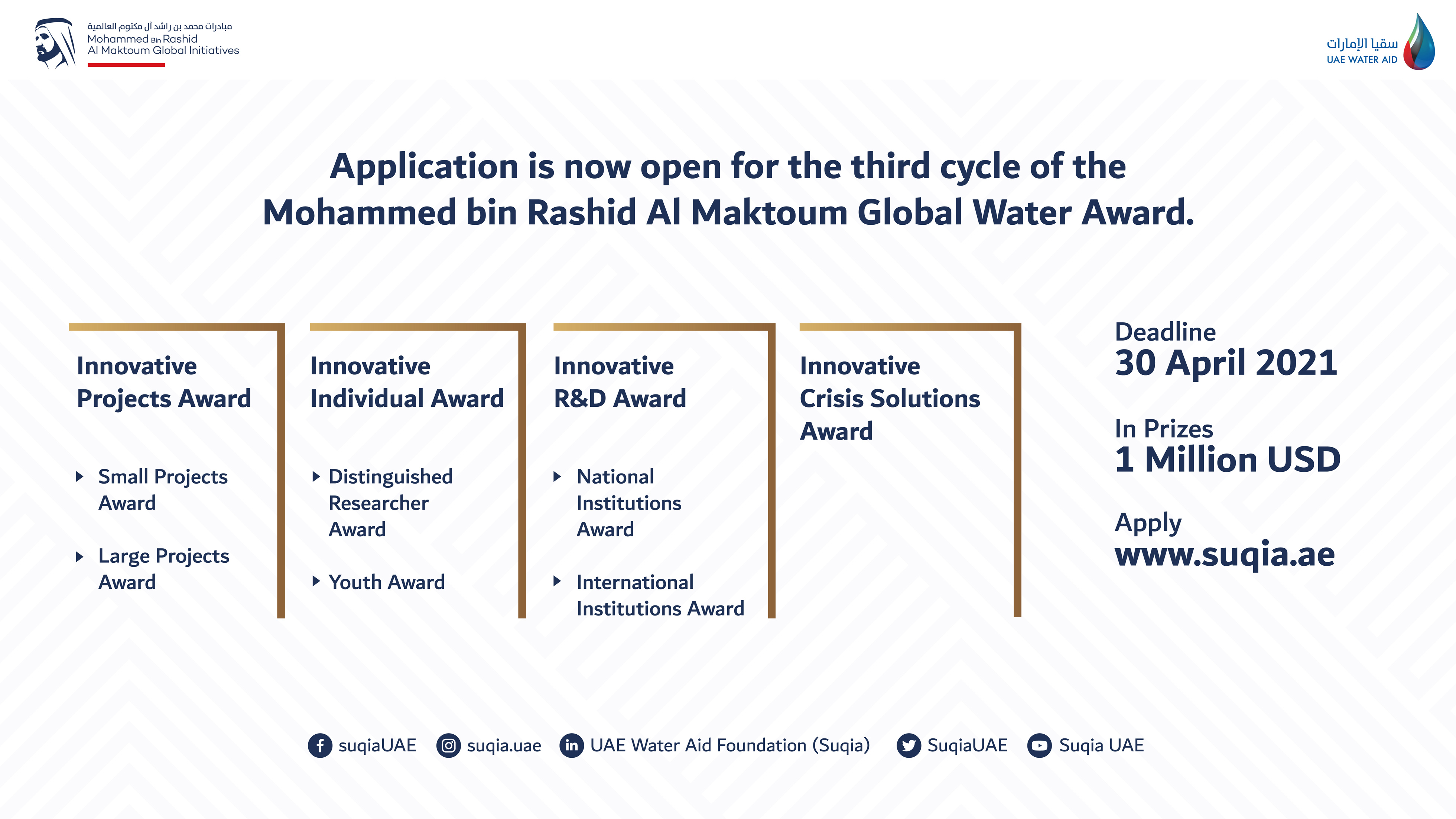 Suqia UAE opens registration for 3rd cycle of the Mohammed bin Rashid Al Maktoum Global Water Award and adds a new category [Source: AETOSWire]