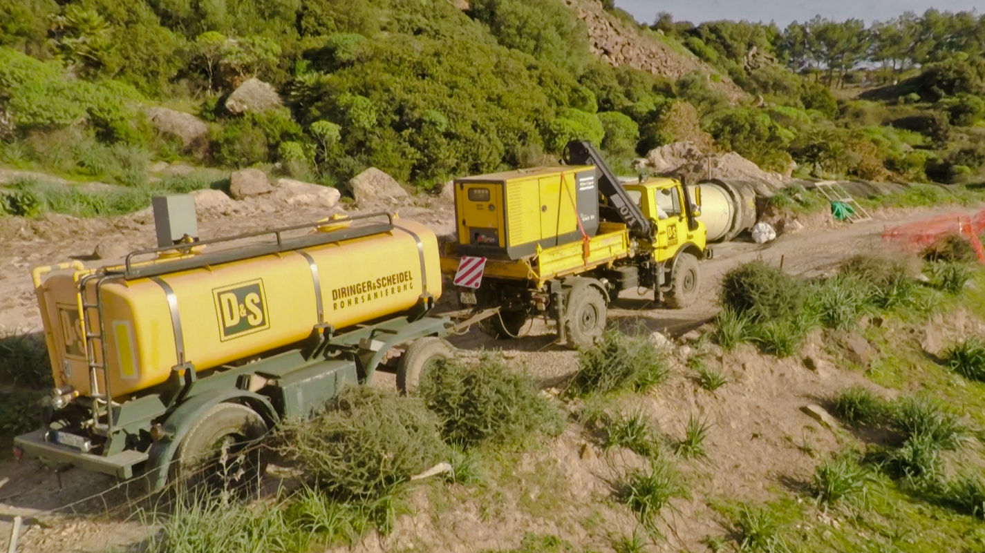 6 km lang ist der Abschnitt der insgesamt 8,5 km langen Druckrohrleitung aus Stahlrohren DN 2000, den die ROTECH Srl, ein ital. Tochterunternehmen der DIRINGER & SCHEIDEL ROHRSANIERUNG GMBH & CO. KG, auf der Mittelmeerinsel Sardinien saniert hat. Hierbei kam ein Relining-Verfahren zum Einsatz, bei dem GFK-Großprofile DN 1800, SN 5000, PN 10, mit Baulängen von 4 m und 6 m in die unterirdisch verlaufenden Abschnitte der Hauptleitung für den Transport von Beregnungswasser eingebaut wurden.