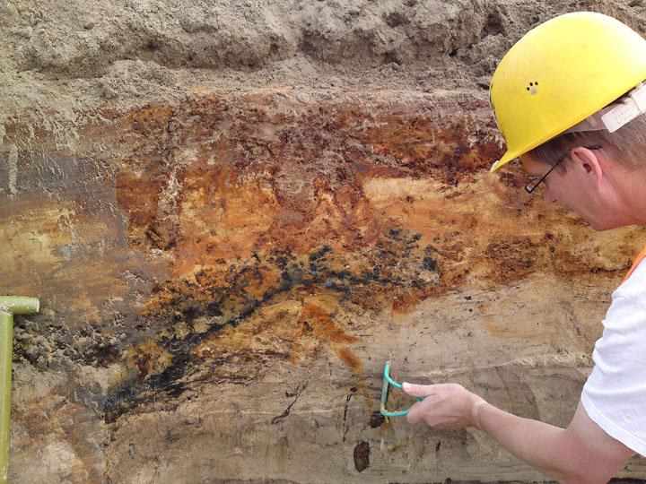 "Wir erhalten hier einen fantastischen Aufschluss über die erdgeschichtlichen Geschehnisse während und seit der letzten Eiszeit, die in unseren Breiten vor etwa 10.000 Jahren endete", berichtet Dr. Olaf Juschus, Wissenschaftler am TU-Fachgebiet Explorationsgeologie von Prof. Dr. Wilhelm Dominik und ausgewiesener Quartär-Experte. Mit Spaten, Messgeräten, Gummistiefeln und Helm sind Dr. Olaf Juschus und sein Kollege Dr. Robert Bussert seit Beginn der OPAL-Bauarbeiten in Brandenburg den Hinterlassenschaften der letzten etwa 140.000 Jahre im Pipeline-Graben auf der Spur. Die sedimentologischen Untersuchungen geben ihnen wichtigen Aufschluss zur jüngeren Landschafts- und Klimageschichte Brandenburgs. "Die klimatische Zukunft kann man nur verstehen, wenn man in die Vergangenheit schaut", sagt Olaf Juschus.