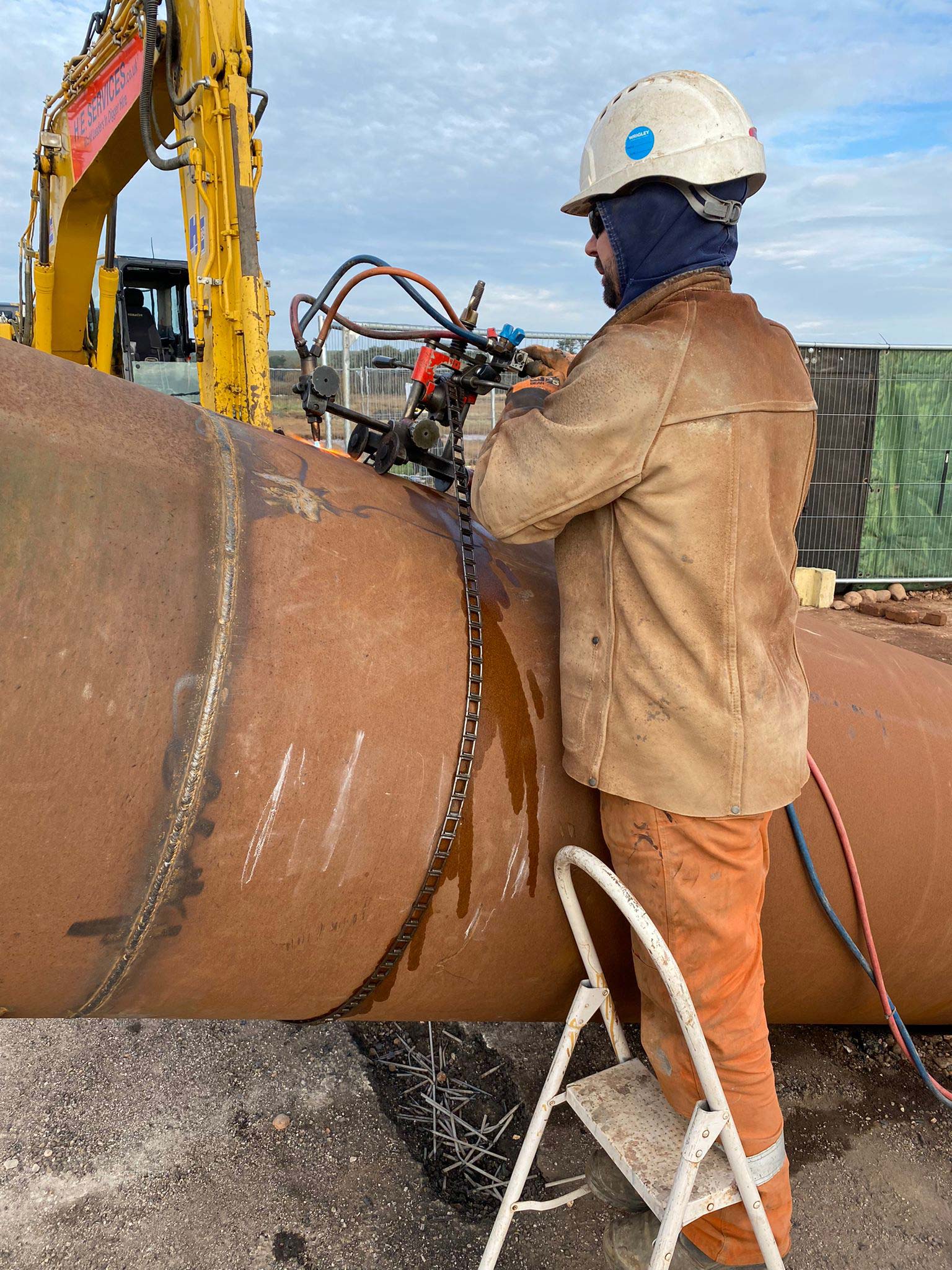 A 1m diameter steel casing in 12m lengths had to welded together to achieve the 60m distance and to ensure the most accurate, efficient job, Arnie Bailey, a freelance ramming expert, was brought in to operate the rammer. He worked in partnership with the Site Manager from GMAC and their team of operators and welders to prepare the equipment prior to the ram.
