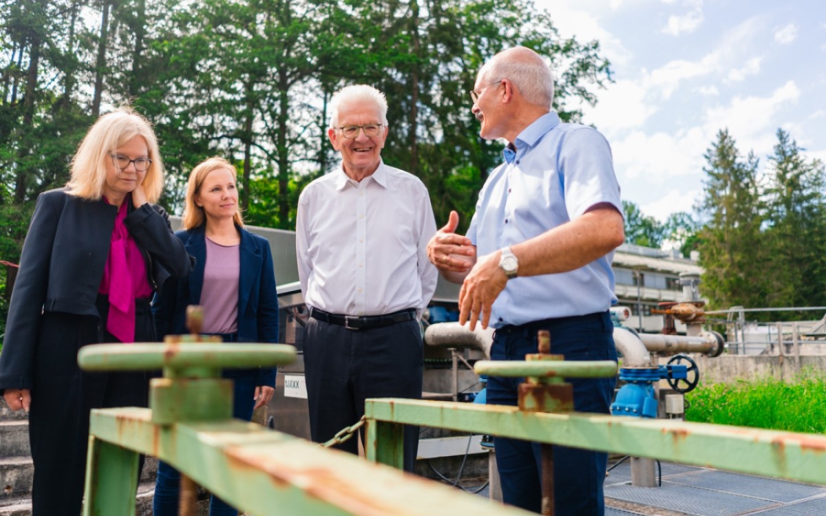 Baden-Württemberg’s Minister President Winfried Kretschmann recently toured the Büsnau Training and Research Sewage Treatment Plant, where a pioneering project led by researchers from the University of Stuttgart and the Karlsruhe Institute of Technology is demonstrating how sewage treatment plants can play a vital role in achieving climate neutrality by recovering raw materials.