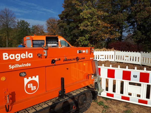 Diese Leitung liegt außerdem tiefer als die ursprüngliche. Da sowohl für die Spülbohrung als auch für den Primus Line® Einzug nur zwei kleine Baugruben an Start- und Endpunkt notwendig waren, hielten sich die Auswirkungen auf Umgebung und Verkehr in Grenzen.