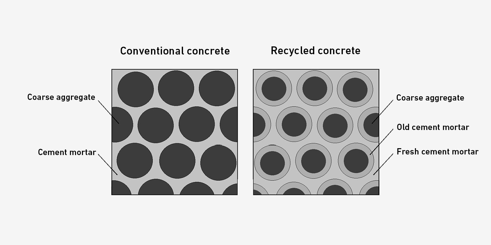 In the new study, the researchers show how to reduce certain disadvantages of recycled concrete with relatively little additional effort. Concrete with too much recycled content has lower load-bearing capacity and is less resistant to water, salts and the atmosphere. That means it has a shorter service life. In addition, recycled concrete has a higher tendency to crack than conventional concrete, which makes using it more of a challenge.