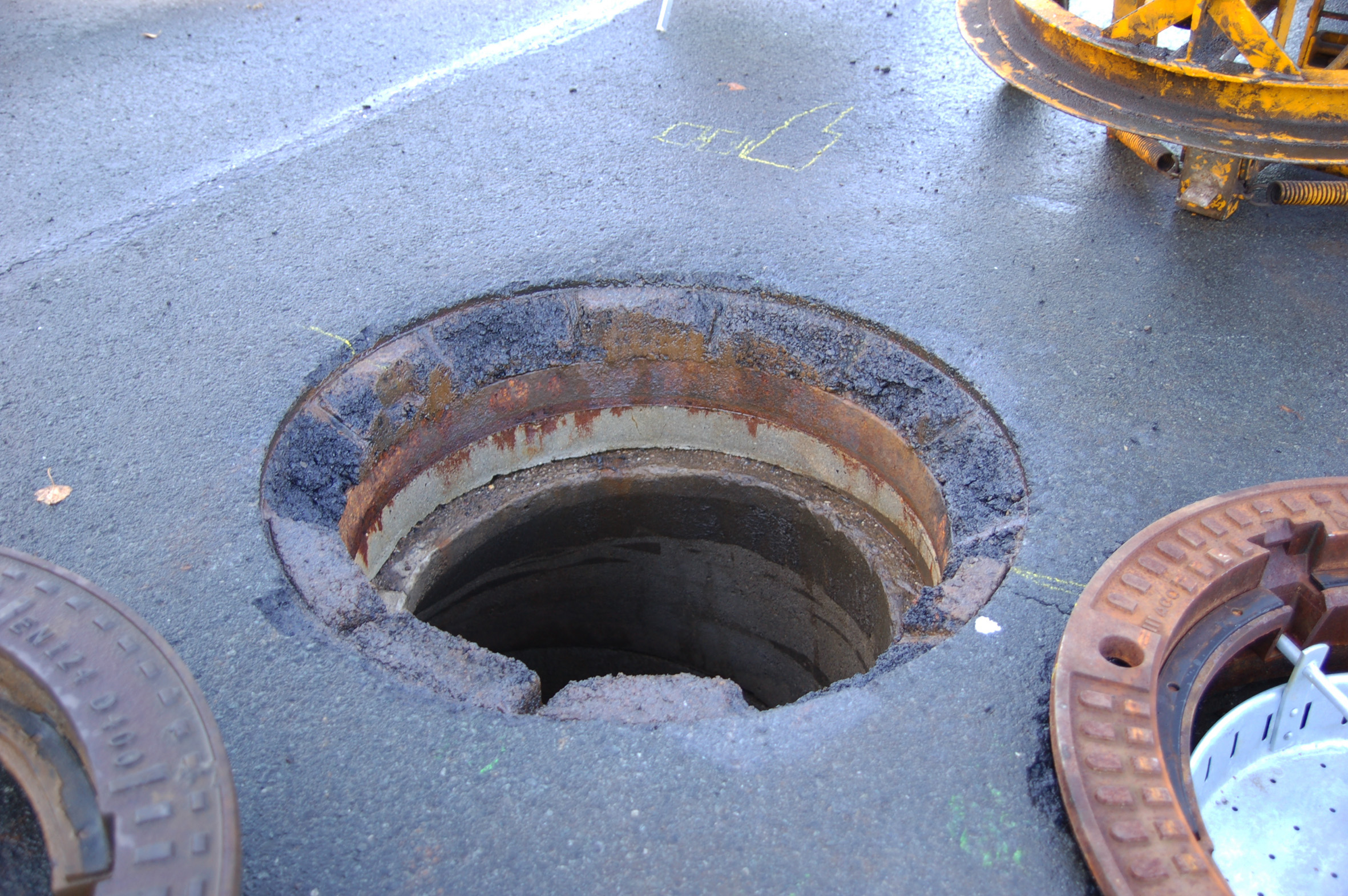 Der starke Verkehr, der täglich über die Carl-Benz-Straße fließt, hat aber auch diesen schwimmenden Schachtabdeckungen einiges abverlangt: Aufgrund eines Einbaufehlers – schlechte Verdichtung im Einbaubereich durch mangelnde Erfahrung in der Einbauweise der neuartigen Schachtabdeckung – haben diese sich im Laufe der Jahre mit dem Asphalt abgesenkt. Mit doppelt negativen Auswirkungen: Durch die Fahrzeuge, die über die abgesenkten Schachtabdeckungen "holpern" entstand eine erhebliche permanente Lärmbelästigung für die Anlieger. Zudem hatte sich durch die Absenkung der Kraftübertrag des Verkehrs auf die Abdeckungen noch verstärkt, die Radlasten "fielen" regelrecht auf die Abdeckungen – die dynamische Belastung war dort punktuell besonders hoch.