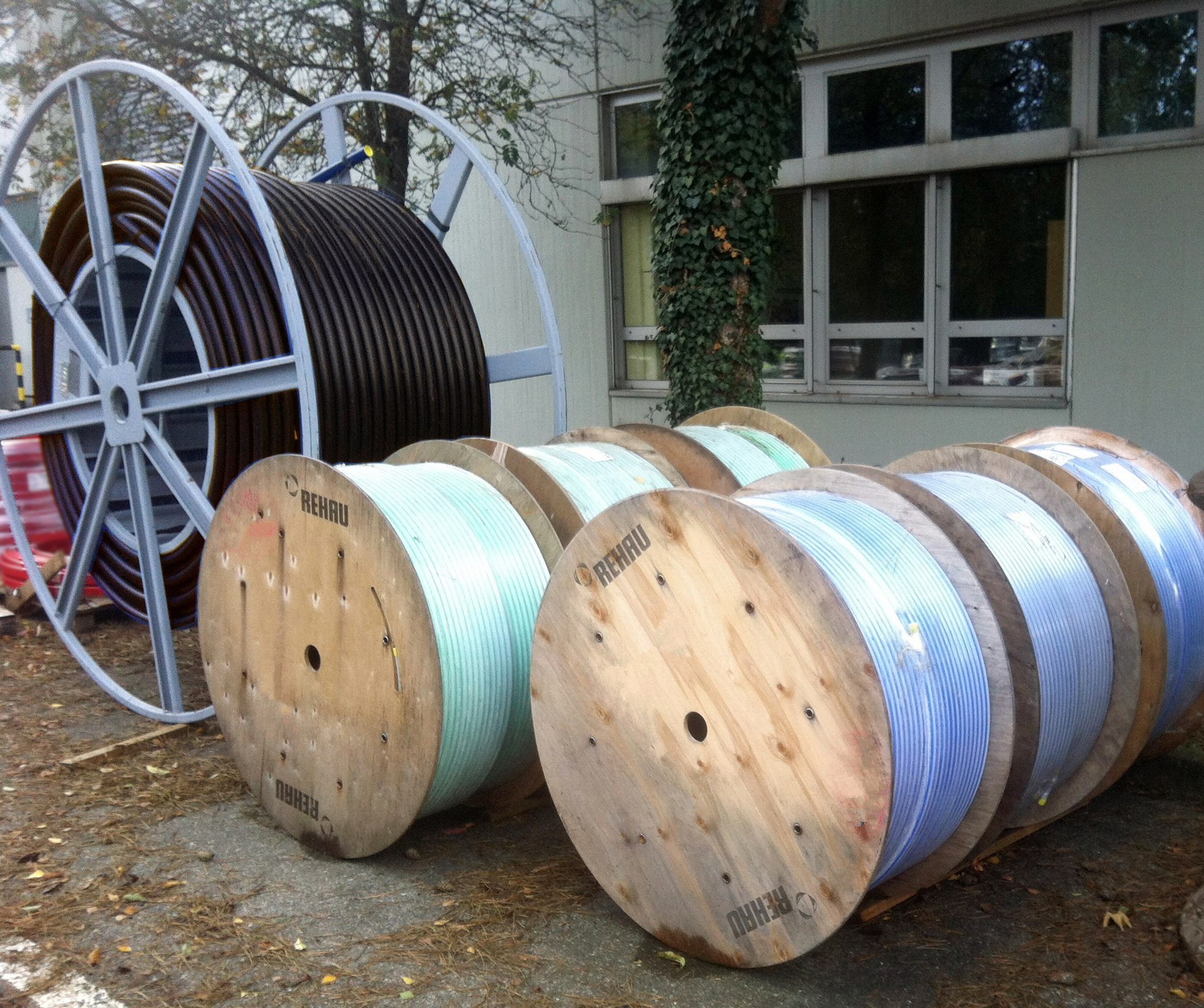 Um unnötige Aufgrabungsarbeiten in der Straße zu vermeiden, diente größtenteils die vorhandene Kanalinfrastruktur der Stadt für die Verlegung. So wurden in die Kanäle Leerrohre eingezogen, die für die Breitbandversorgung genutzt werden und dabei die Entsorgungssicherheit des Abwassers nicht einschränken. Mehrere Kilometer RAUSPEED Mikrokabelrohre kamen hierbei zum Einsatz. Mit diesem System ermöglicht REHAU den Aufbau flexibler und langfristiger Breitbandinfrastrukturen und die glasfaserbasierte Erschließung von Gebäuden mit Hochgeschwindigkeits-Datennetzen. Durch das druckbeständige Komplettsystem und die spezielle Trapezriefung RTR auf den Innenflächen der Mikrokabelrohre entstehen optimale Voraussetzungen, um auf langen Strecken Lichtwellenleiter- beziehungsweise Glasfaserkabel unter Druckluft wirtschaftlich einzublasen.