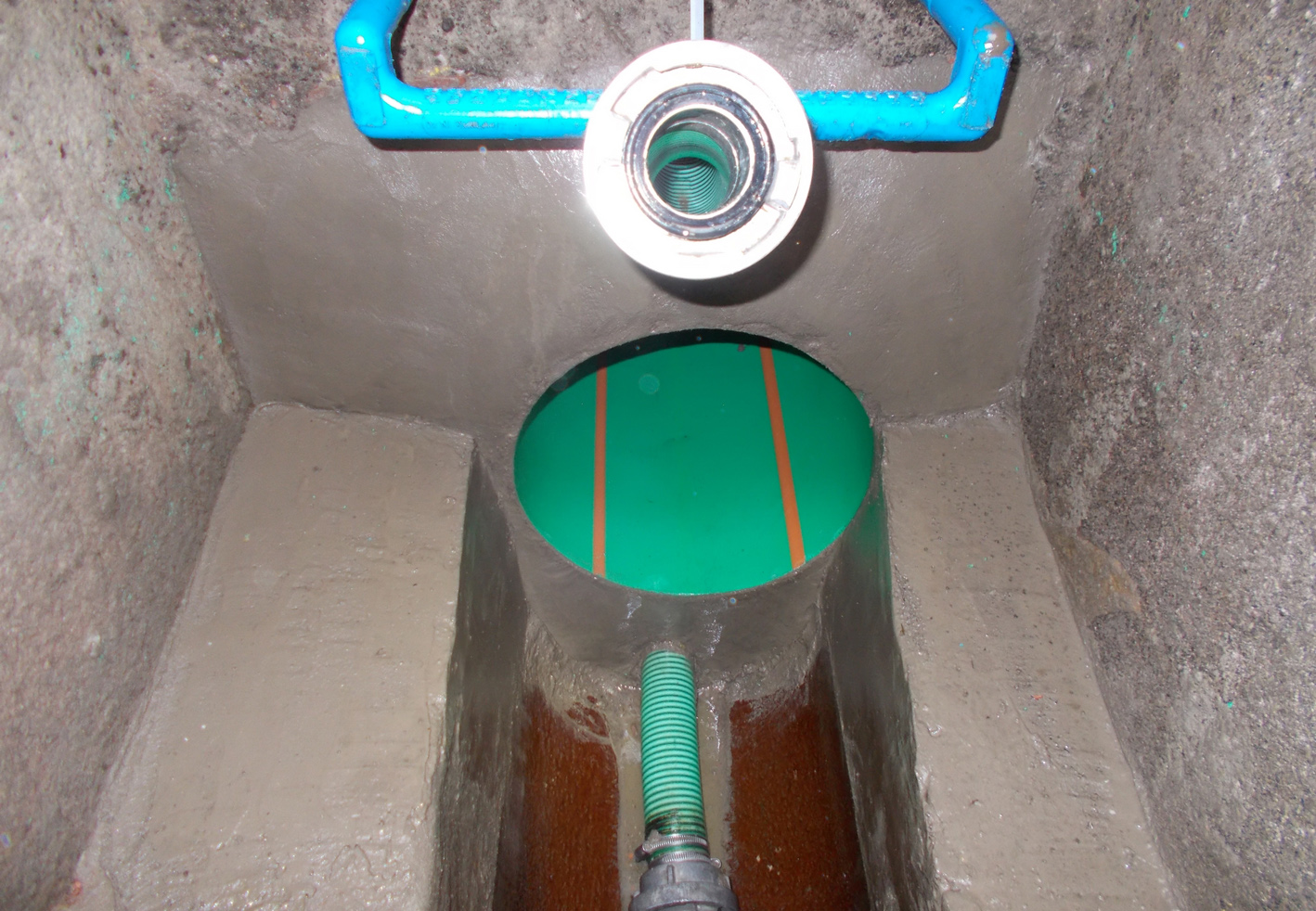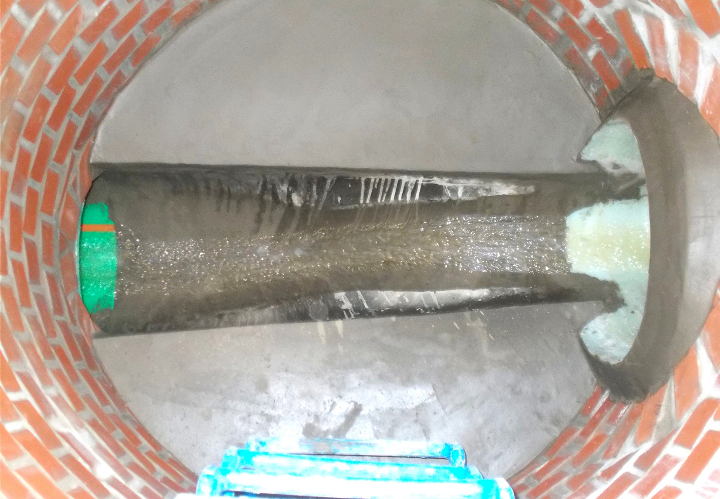 Dommel entschied sich hier für ein Produkt aus ungesättigtem Polyesterharz und korrosionsbeständigen ECR-Glasfasern nebst integriertem Preliner. Mittels Seilwinde erfolgte der Einzug des mit Harz getränkten Liners in das Altrohr. Durch Luftdruck wurde der Schlauch im bestehenden Kanal kalibriert und aufgestellt.