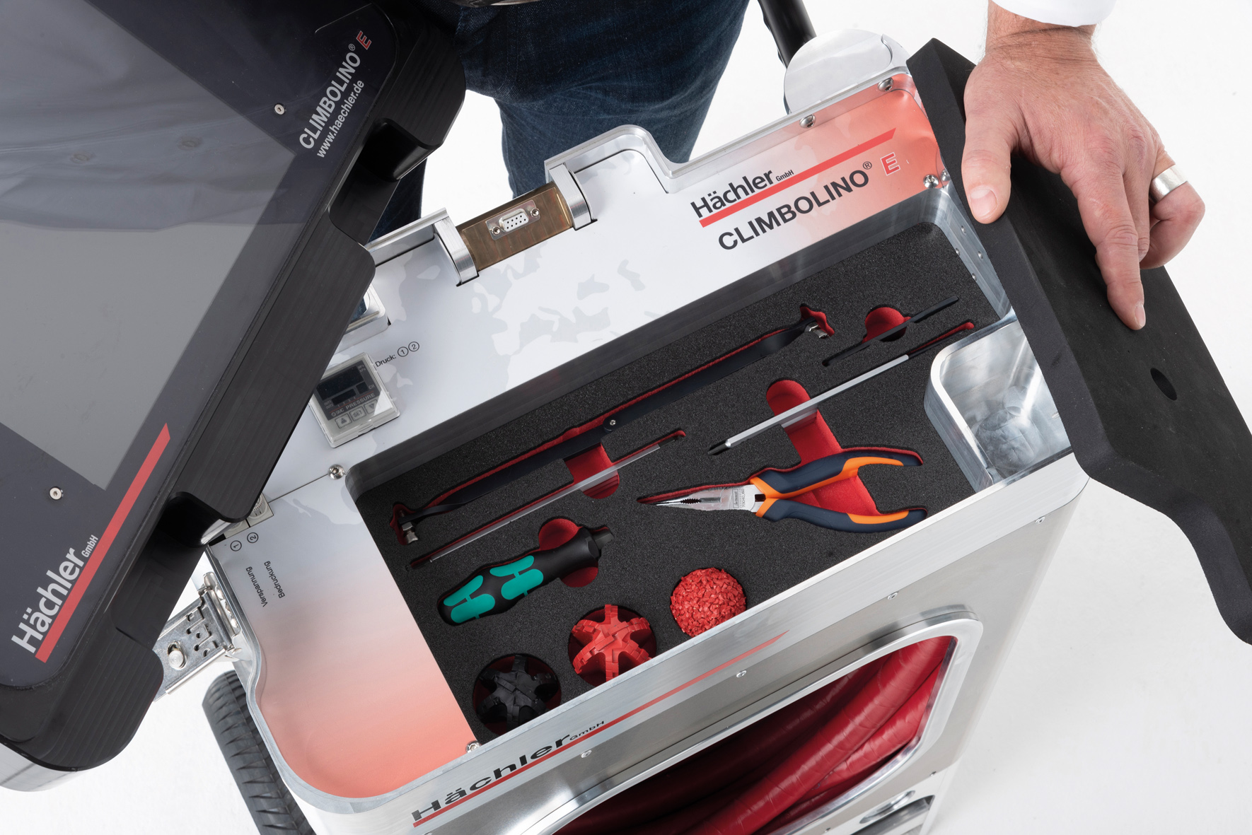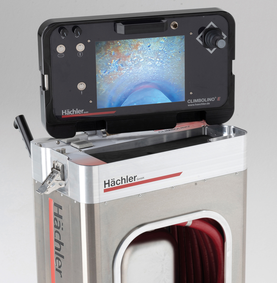Rolf Peters, managing director of Hächler said, “When demonstrating, I always see the amazement from customers when I push the Climbolino E through their various test sections, often effortlessly. Not many customers expect to see the outstanding flexibility and enormous power of the cutter, hose, and camera combination, which is what makes it so special and unique as a milling robot.