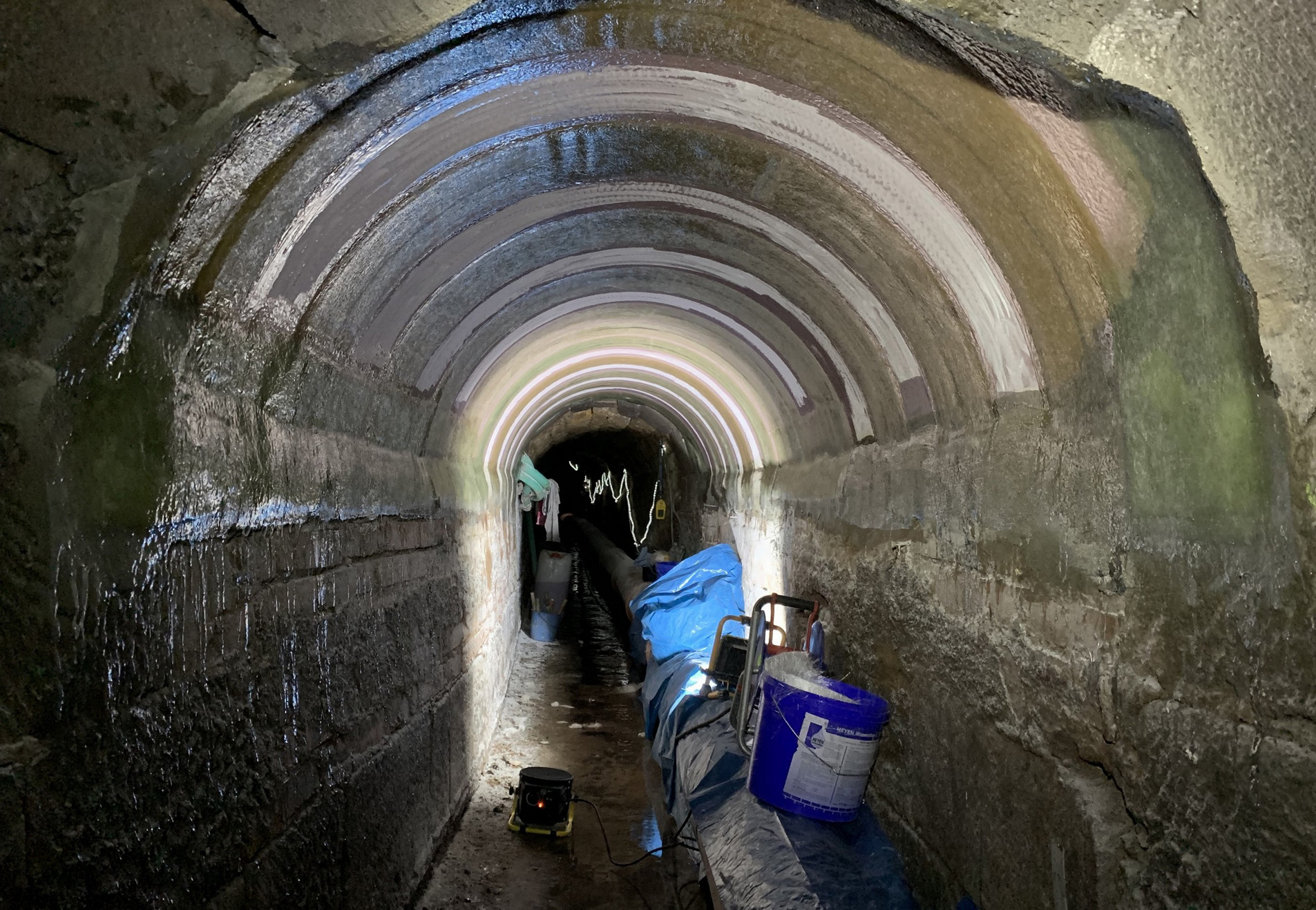 Bei dem Projekt in Reutlingen wurden aufgrund der gebogenen beziehungsweise abgewinkelten Geometrie der Altrohre in verschiedenen Bereichen Halbschalen mit unterschiedlichen Einbaulängen verwendet. In Kombination mit dem vorher angebrachten Mörtel und den mechanischen Befestigungen entstand durch die Halbprofile ein neuer, statisch tragender Rohrscheitel.