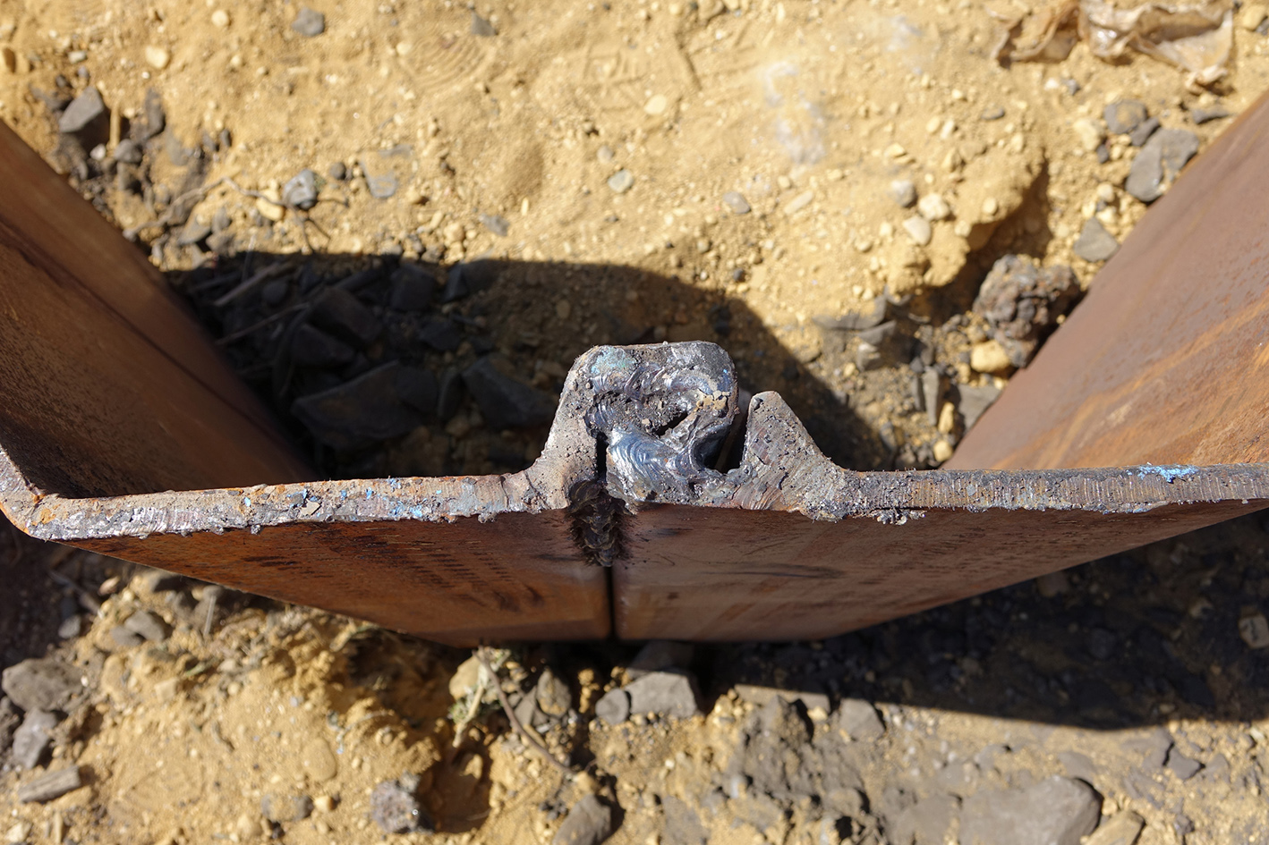 „Um die Reibungskräfte beim Einpressen der Spundbohlen am Schloss zu reduzieren, wurden die Schlösser mit Bitumen versiegelt“, führt Aydin aus. Darüber hinaus wurden die Schlösser für eine größere Festigkeit im oberirdischen Bereich nach dem Einpressen abschließend noch verschweißt. Mit jeder Bohle, die in den Boden gepresst wird, wandert die Presse dann Schritt für Schritt weiter. Klemmbacken halten sich hierfür an den eingepressten Spundbohlen fest. So konnten die 34 je 9,5 Meter langen Spundbohlen erfolgreich in kurzer Zeit in den Baugrund eingebracht werden.