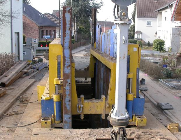 Auf der kompletten Länge der Wahner Straße von 380 m werden derzeit in bis zu 7 m Tiefe neue Stahlbetonrohre mit dem Durchmesser DN 600 verlegt. Problem dabei: Die Straße ist sehr schmal und der Boden extrem rollig und fließend. Daher musste hier nach einer Lösung gesucht werden, die die Fundamente der alten Häuser nicht gefährdet. Hinzu kommen die Forderungen nach Lärmschutz und erschütterungsfreier Einbringung der Profile. Weitere wichtige Aspekte im innerstädtischen Kanalverbau sind neben erschütterungsfreiem Einbringen der Profile die Forderungen nach Lärmschutz, setzungsarmem Arbeiten und kraftschlüssiger Verdichtung gegen den gewachsenen Boden.
