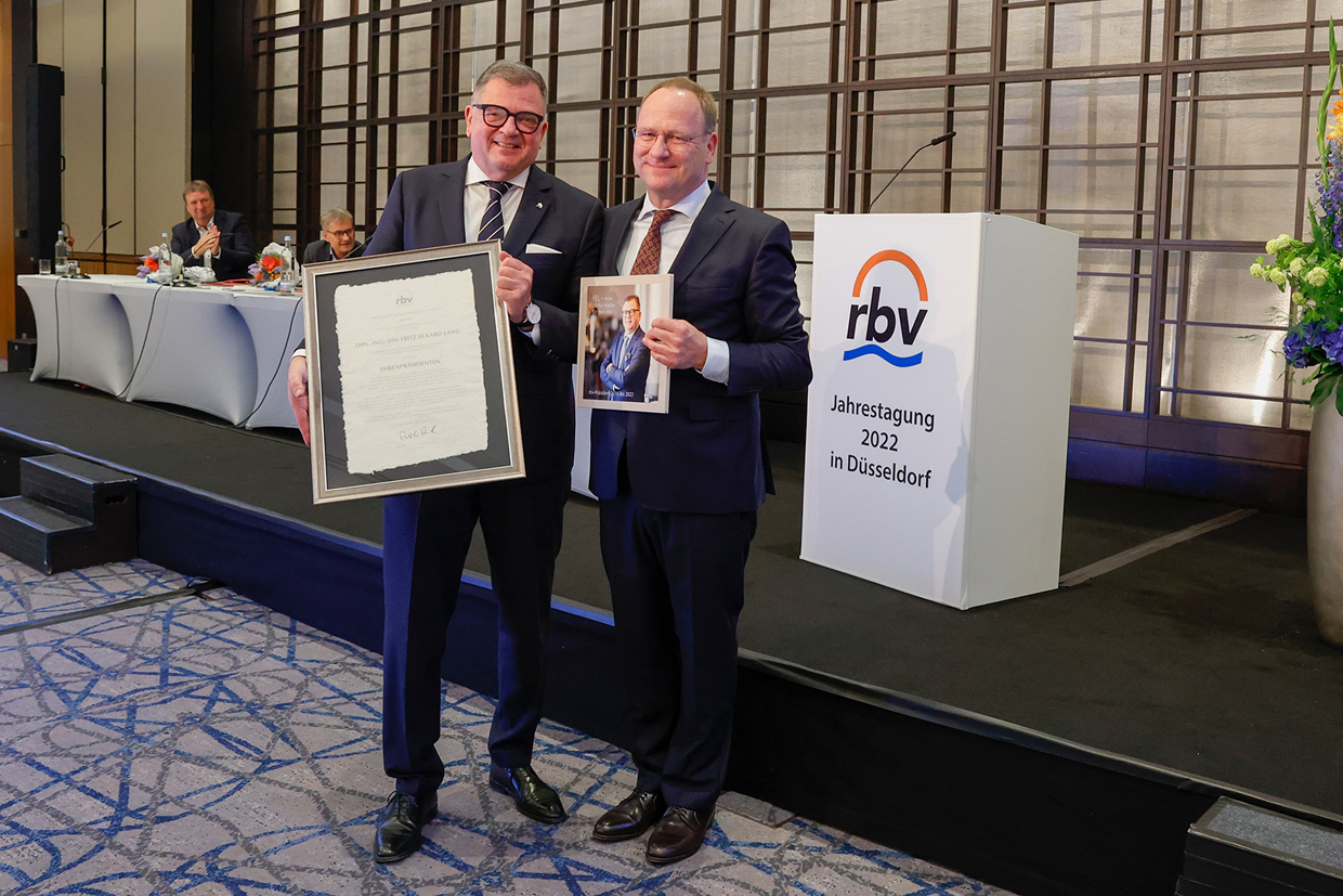 Gemeinsam mit dem rbv-Vorstand – so ein roter Faden in den vielen von einer profunden Wertschätzung Langs geprägten Grußworten – habe er sich intensiv dafür eingesetzt, Netzwerke zu knüpfen, eine besondere Sichtbarkeit für unsere Infrastrukturen zu erzeugen und die Bedingungen des Leitungsbaus hierzulande nachhaltig zu verbessern.