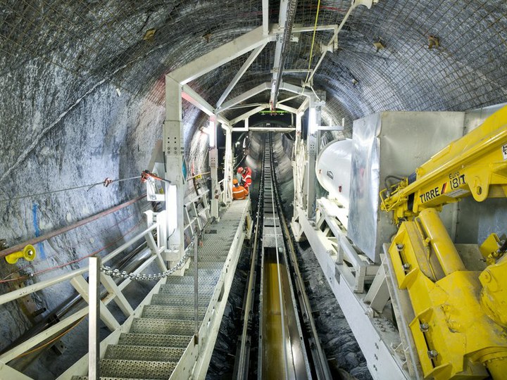 In November 2010 the Herrenknecht Gripper TBM began driving the first tunnel and completed it in October 2011 after best performances of up to 130 meters per week. Then the TBM cutterhead was disassembled and the back-up pulled back through the pressure shaft and made ready to go again. From February 2012 the TBM bored its way through the second tube and was still able to achieve a weekly best performance of 133 meters at the end of the tunnel in mid March 2013.