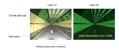 LUMA have been used in road construction of China and was recommended for application in the national traffic system. They can be applied in underground engineering for energy saving and disaster prevention by providing emergency lighting.