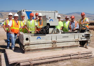 A second 580-foot drive was achieved in August 2010 by subcontractor Ed Boland Construction Inc. of Great Falls, MT. This drive took place at the Missoula International Airport, where a water line extension connected a runway to a new air traffic control tower. Contractors installed 24-inch OD steel casing to house 12-inch OD PVC. The open launch shaft was set up seven feet under the runway. The drive's grade was nearly flat so an accurate bore was essential. The red, stiff clay was just right for the drive, although Ed Boland Construction crew members also used a bentonite gel recipe to enhance the process by reducing jacking force. The full breadth of the job included four other short utility drives. The pilot tube step took one day while the pipe installation was completed in two weeks. The project's main contractor was Knife River Corporation and engineer was Morrison and Maierle, Inc., both of Missoula, MT.