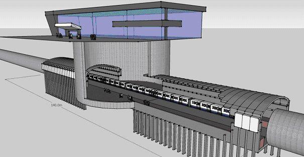 The jacked arch and jacked deck technologies have a capability of installing underground stations. The graphic of a station is based on driving in both directions from a central excavation which would form the access concourse. The length of the station is determined by platform length required to accommodate the number of carriages. A platform length of 140m is shown which will accommodate up to 8 carriages. Longer lengths would be possible. Current dimensions for spans and lengths for stations can easily be accommodated. The jacked arch and deck alternative graphics are based on a 12m width between platforms which would accommodate twin tracks with wider trains than the London underground.
