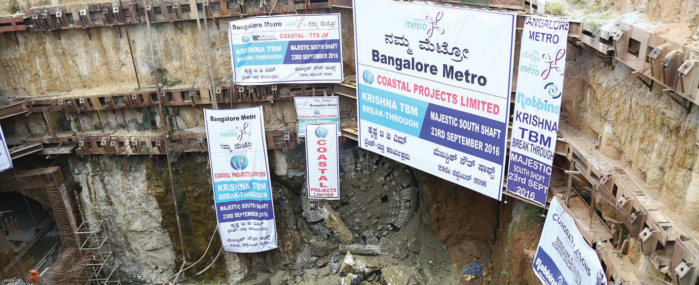 End of September, Bangalore’s last TBM for the city’s metro rail project broke through, marking the end of TBM tunneling on the Namma Metro phase 1. The Robbins-operated machine, known as “Krishna”, bored a 750 m (2,460 ft) drive through challenging conditions between Chickpet and Majestic stations. Cleanup and final commissioning of the tunnel will be completed in 2017, and is the last obstacle before owner Bangalore Metro Rail Corporation Ltd. (BMRCL) can open the Malleswaram-Majestic link. The TBM’s sister machine, “Kaveri”, completed a parallel tunnel in June 2016.