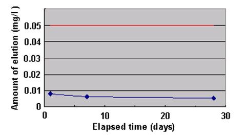 Table 5: Composition of sample for the ion elution test. (Source: Shimada et al.) Figure 9 shows the relationship between elapsed time and the quantity of elution of the hexavalent chromium. Although the quantity of chromium in Figure 9 is treated with a fixed quantity of the total amount of chromium, since trivalent chromium turns into insoluble hydroxylation chromium in alkali slurry conditions which use hydraulic powder, this brings the same result as having treated it with a fixed quantity of only the hexavalent chromium. It can be said that the flyash surface-active agent mixture did not elute hexavalent chromium. Taking this into account, the flyash surface-active agent mixture is excellent for controlling the elution of the components.