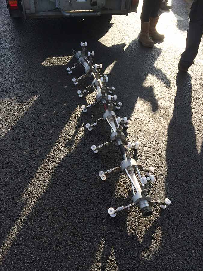 In the meantime the UV light train was set-up and connected to a towing line that ran through the liner. The light train was then placed into the liner, the ends were sealed using special fittings that allowed the light train to be pulled freely through the liner whilst maintaining it in its inflated state so as to achieve the curing process. The liner was then fully inflated against the inner culvert wall.