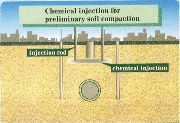 It is necessary to consider upheaval pressure to ensure appropriate planning when determining the injection depth for the restoration constructions. A pulse injection is adopted because ground upheaval can be easily monitored and controlled, making it easier to repair the damaged pipes.