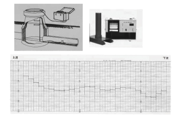 The measurement of the existing position is performed by optical survey and, where man-entry is possible, by manual logging with results contributing to background information for the restoration plan. However, in the case of gas or small conduit pipes when man-entry is not possible, two kinds of devices are used. The first is a camera with a survey instrument attached which is inserted into the pipe to measure its depth, as shown in Figure 8. The second is a device which directly measures the top positions of the pipeline as shown in Figure 9. This top position measurement system has been developed by the Department of Earth Resources Engineering at Kyushu University.