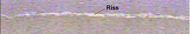 In contrast the measurement of crack lengths as regards the accuracy does not represent a problem. If the crack on the fold-out was measured with a length of 1506 mm (Fig. 8 b), the relative measuring error, on the other hand, would only be 3.68 mm/1506 mm = 0.0024 or 0.24 % and would thus lie in an acceptable range.