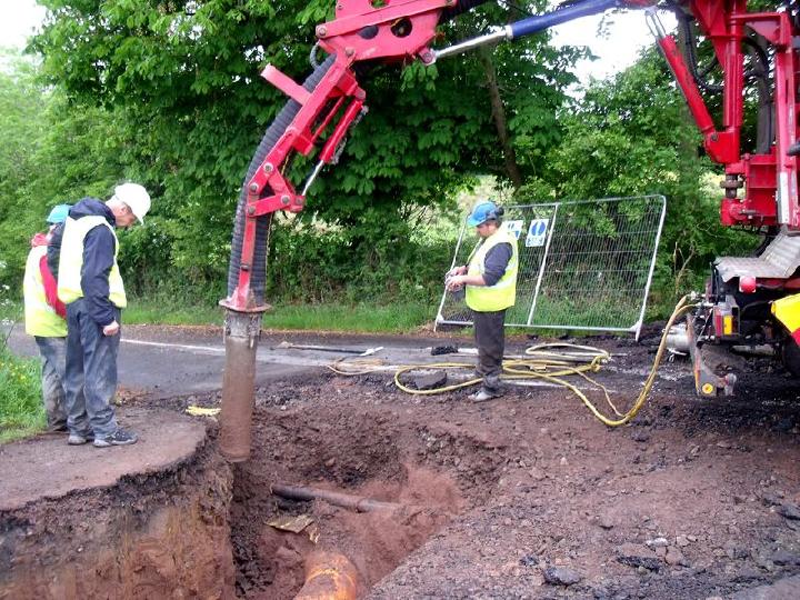 - Open trench works in an urban area on Benford Drive in Newtonards, an area with very compact stone/rocky ground where a 400 mm by 1,200 mm by 4 m long trench was excavated in around 1½ hours. The use of a lightweight breaker in the very rocky sections would have speeded up the operation in what was very difficult ground.