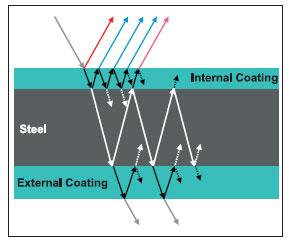 Quality may be limited due to disbondment, lack of full coverage or insufficient thickness. Also excessive thickness, whilst being a waste of valuable material, leads to problems for other inspection methods. As will be shown, ultrasonic intelligent pigs are capable of detecting most of these flaws. In some cases this can even be done in conjunction with a regular inspection of the steel wall.